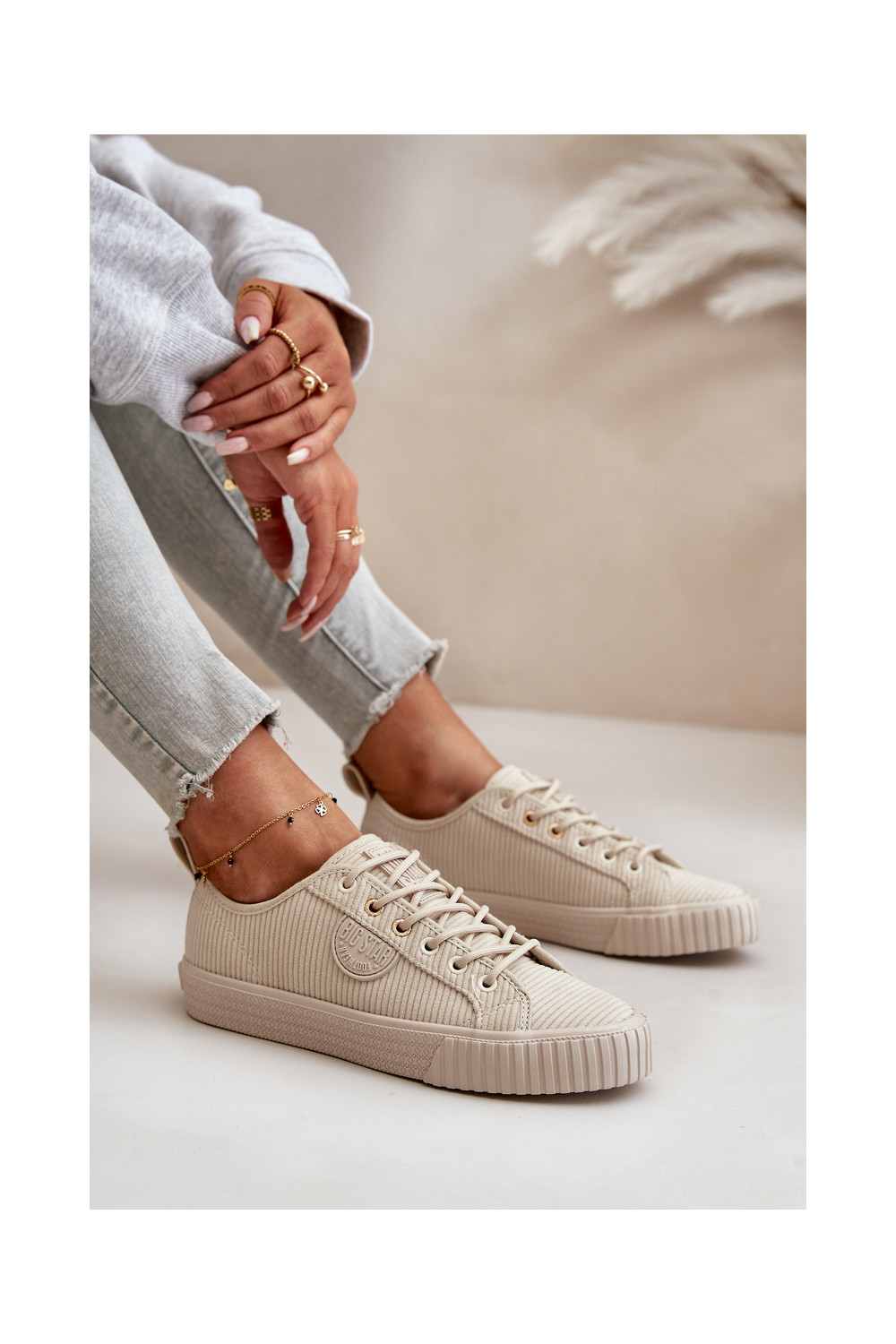 Manšestrové boty Ležérní obuv zateplené Big Star OO274812 Hi-Poly System béžové
