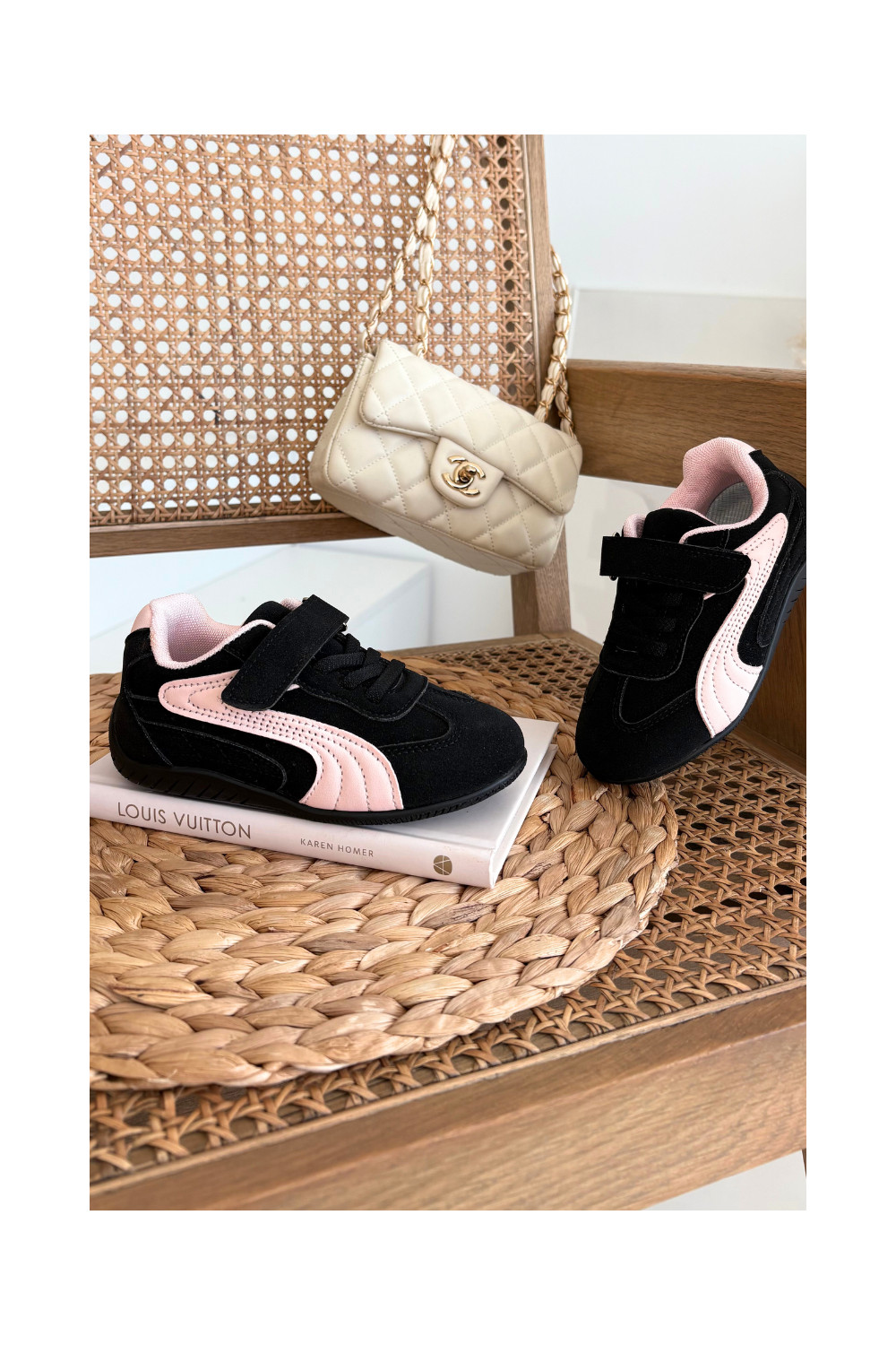 boty Dětské tenisky Z s lepeným zapínánímem Černé a-růžová Perrin