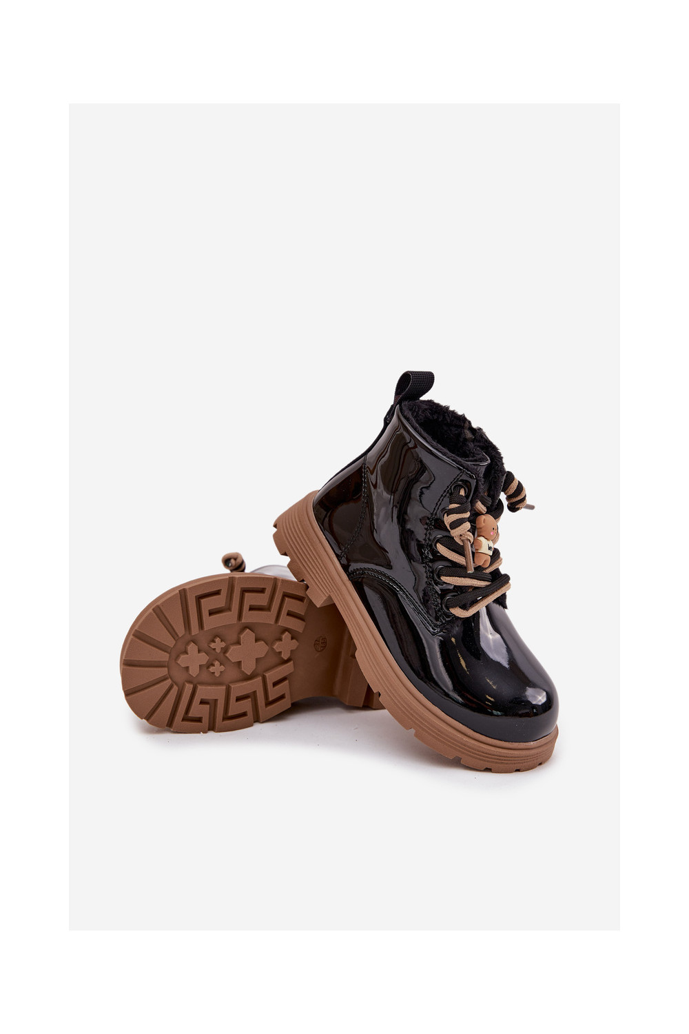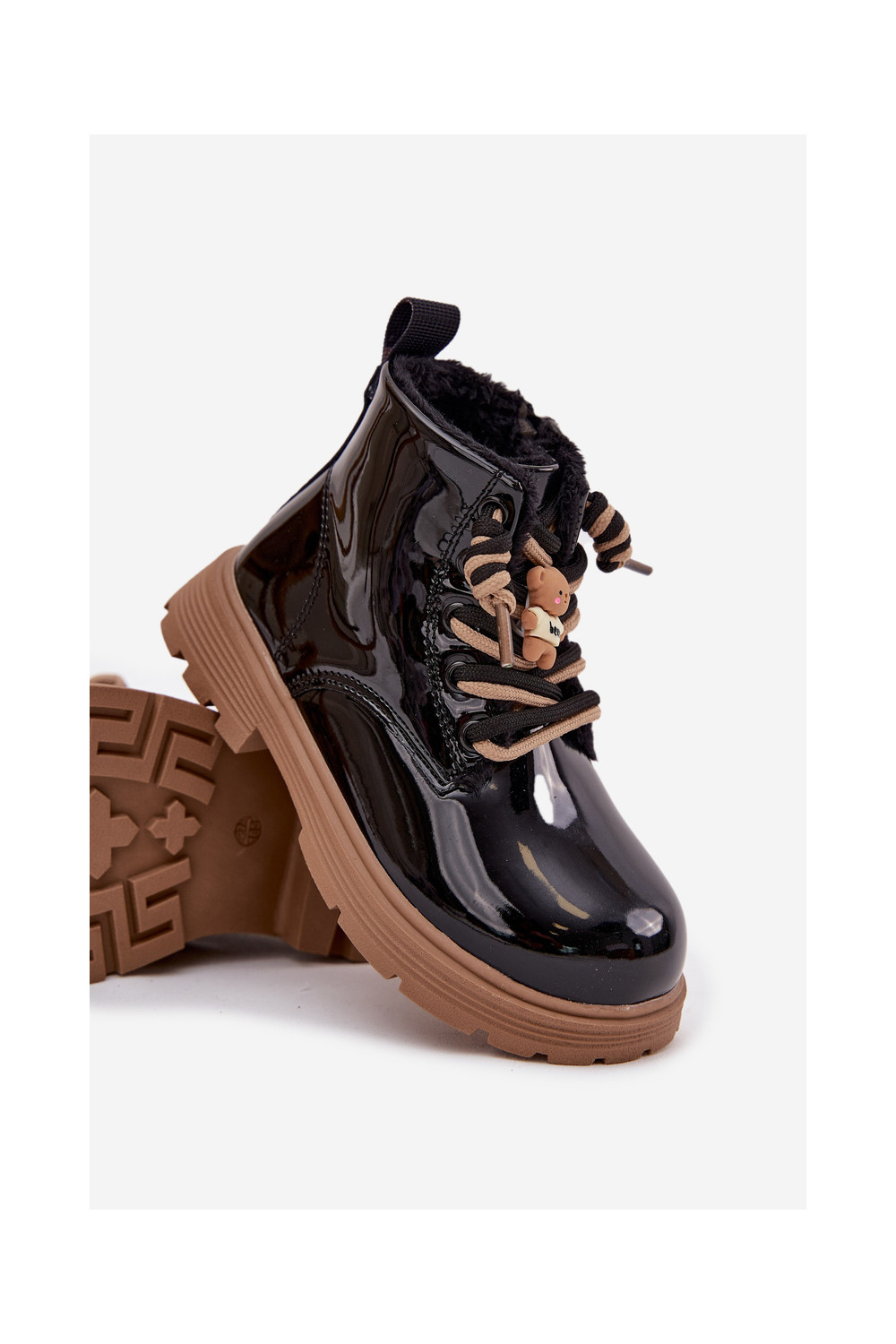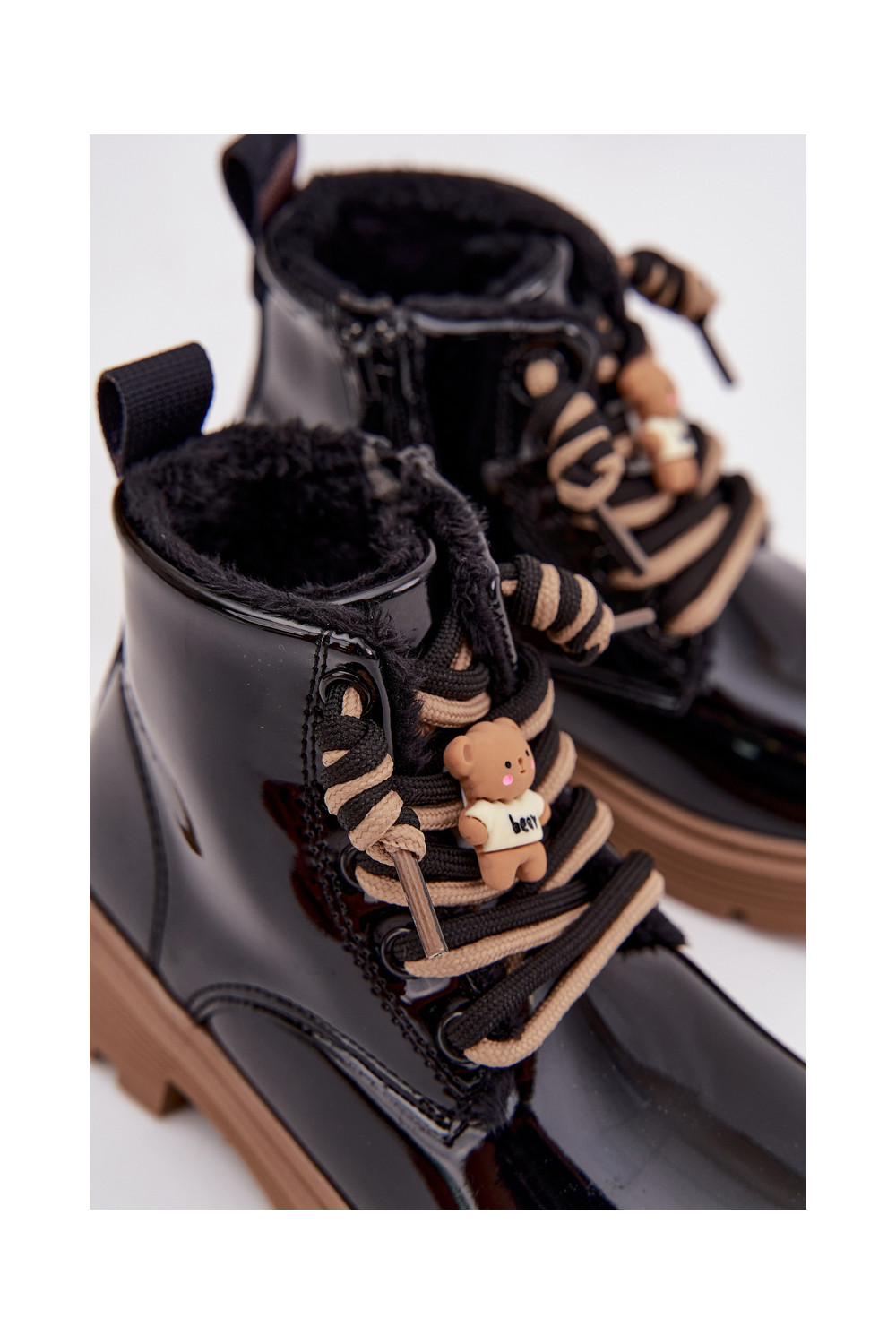 zateplené Dřeváky Dětské s efektem laku Z Przypinką Medvídci Černé Jovellea