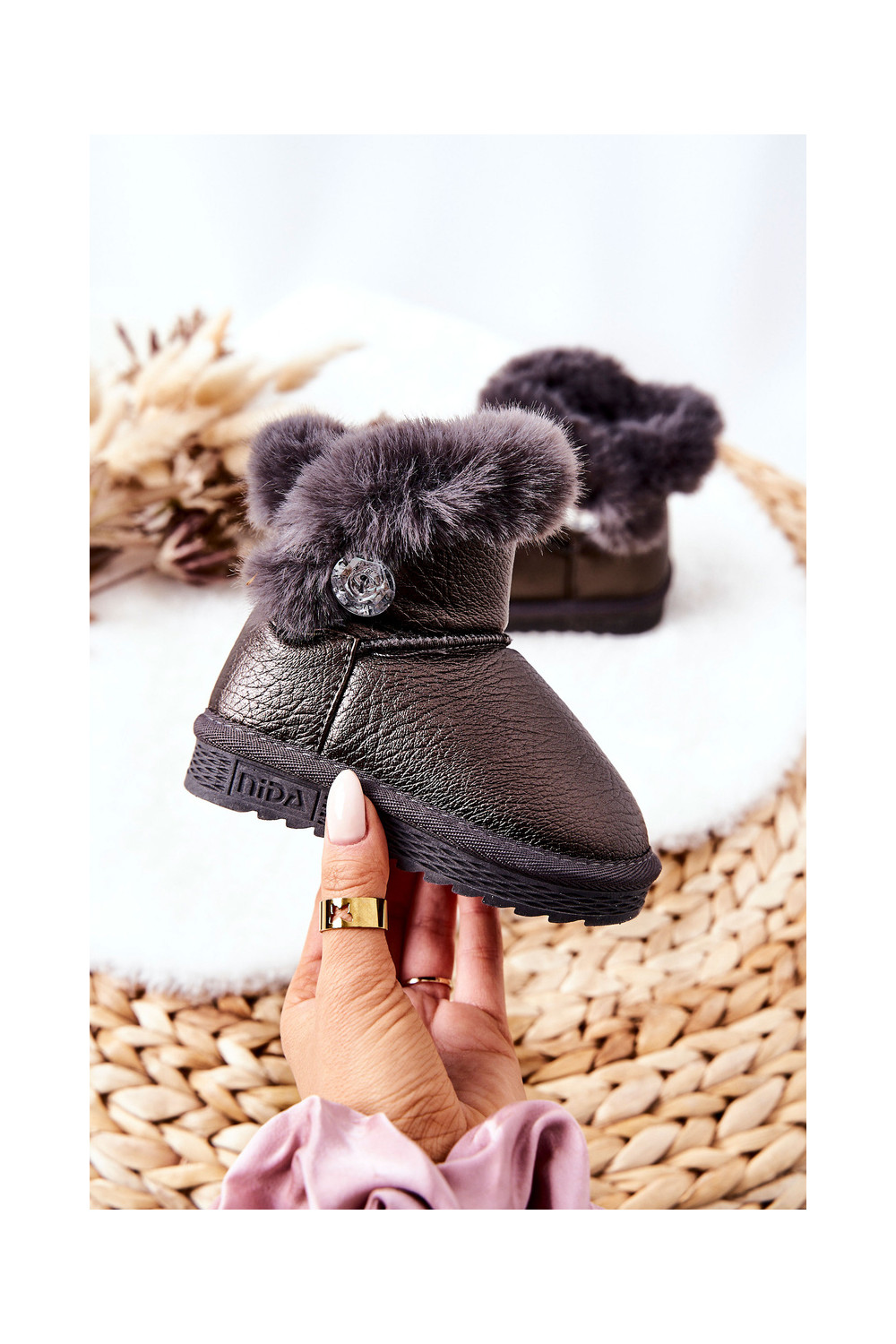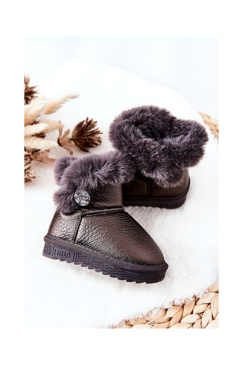 zateplené Dřeváky Sněhule s kožešinou šedá Bessie