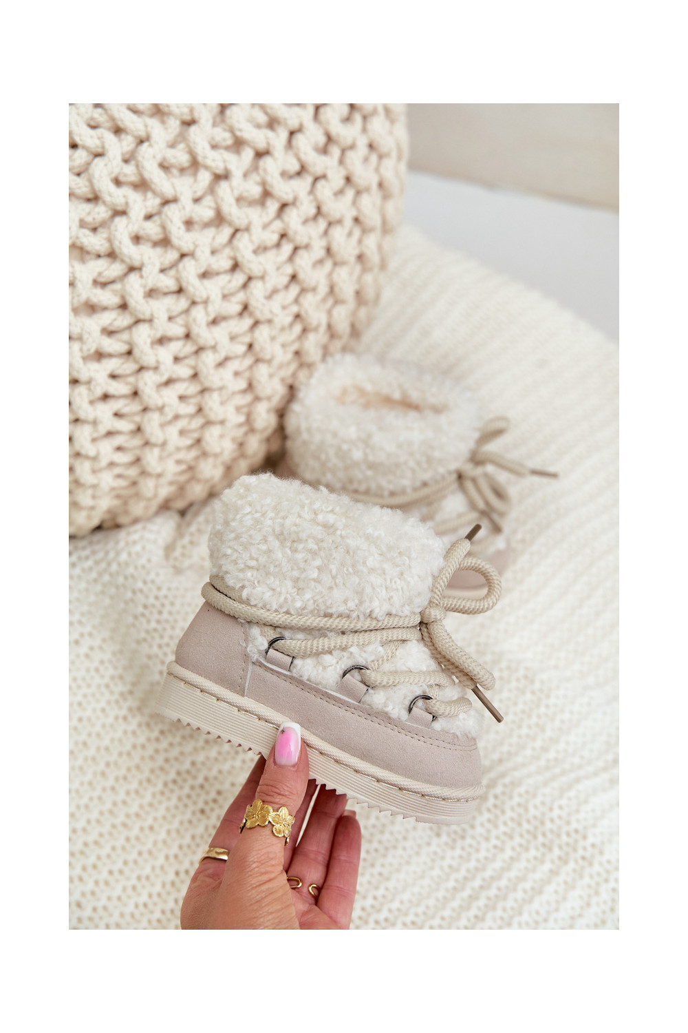 teplý Dřeváky Sněhule Dětské s popruhy béžové Asija