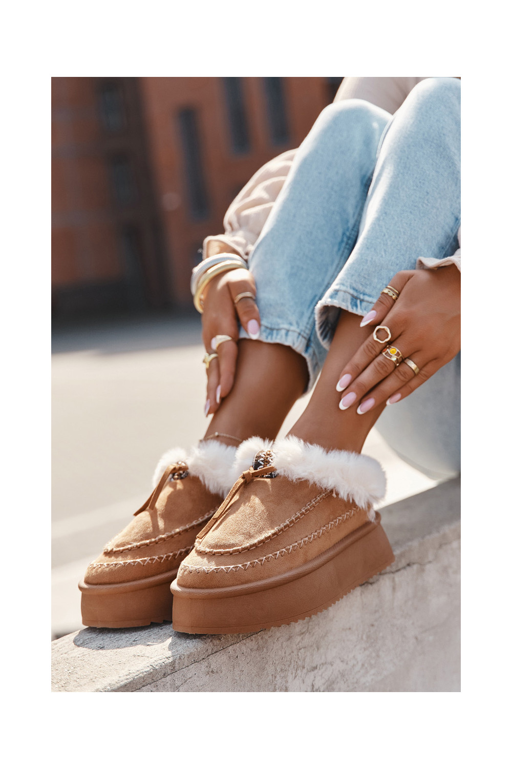 Sněhule s platformou s kožešinou I Przeszyciami hnědáKellina