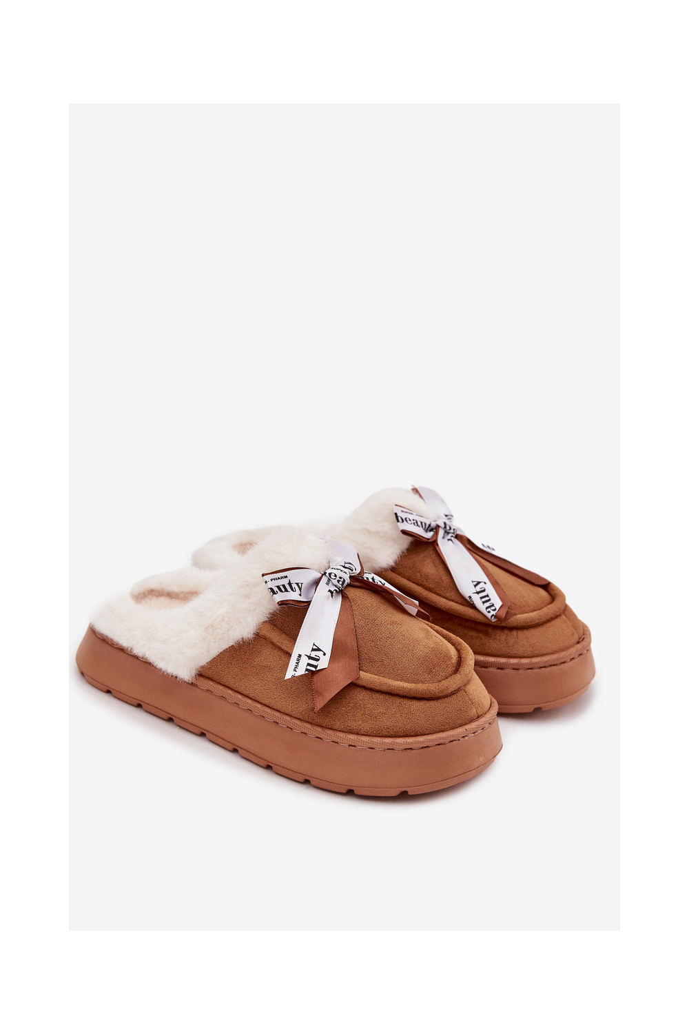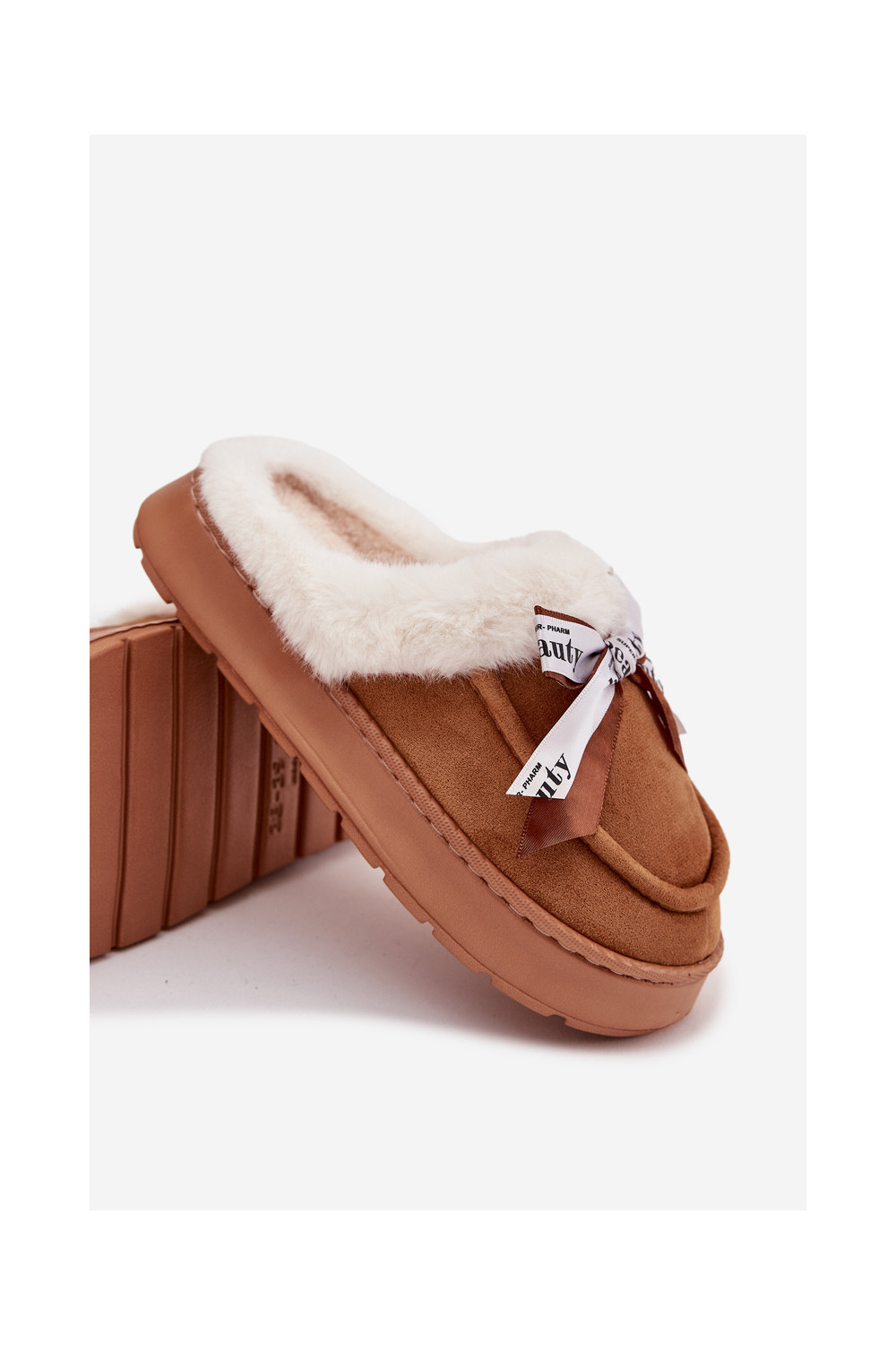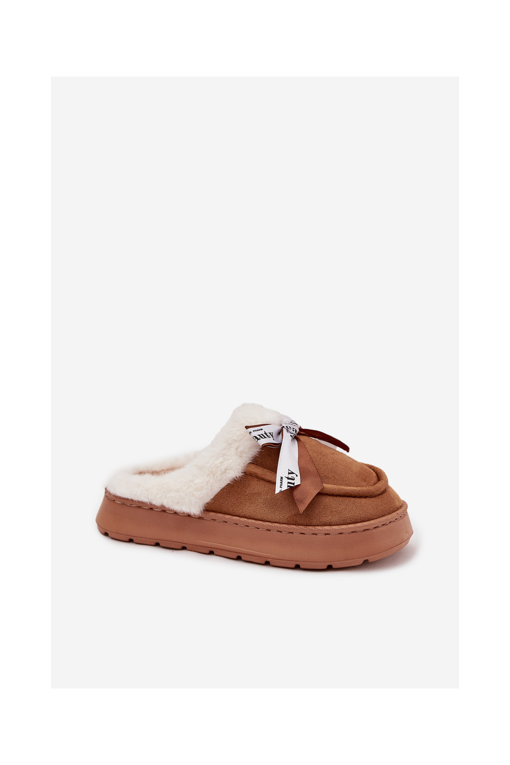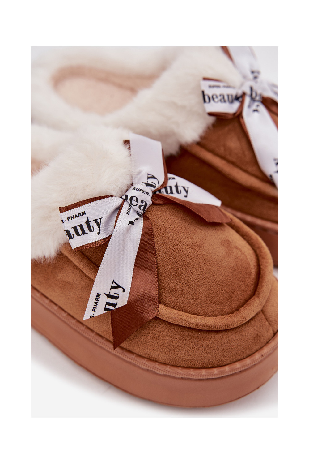Pantofle s kožešinou I Kokardką hnědá Fenella