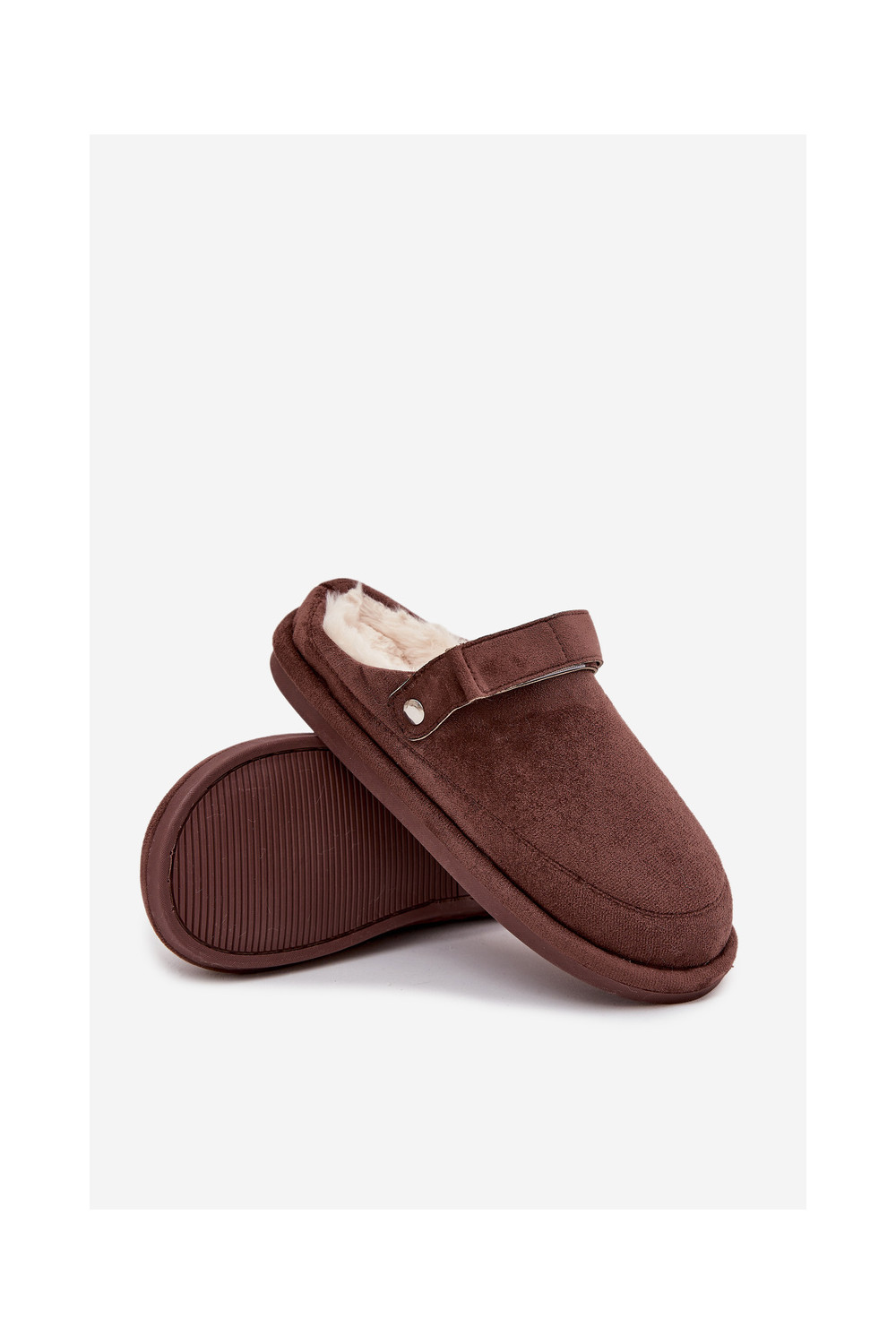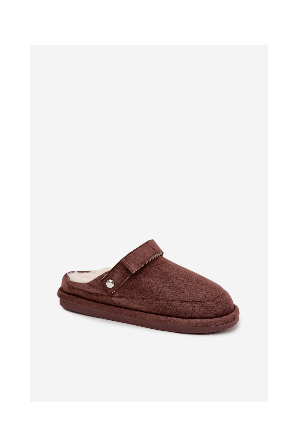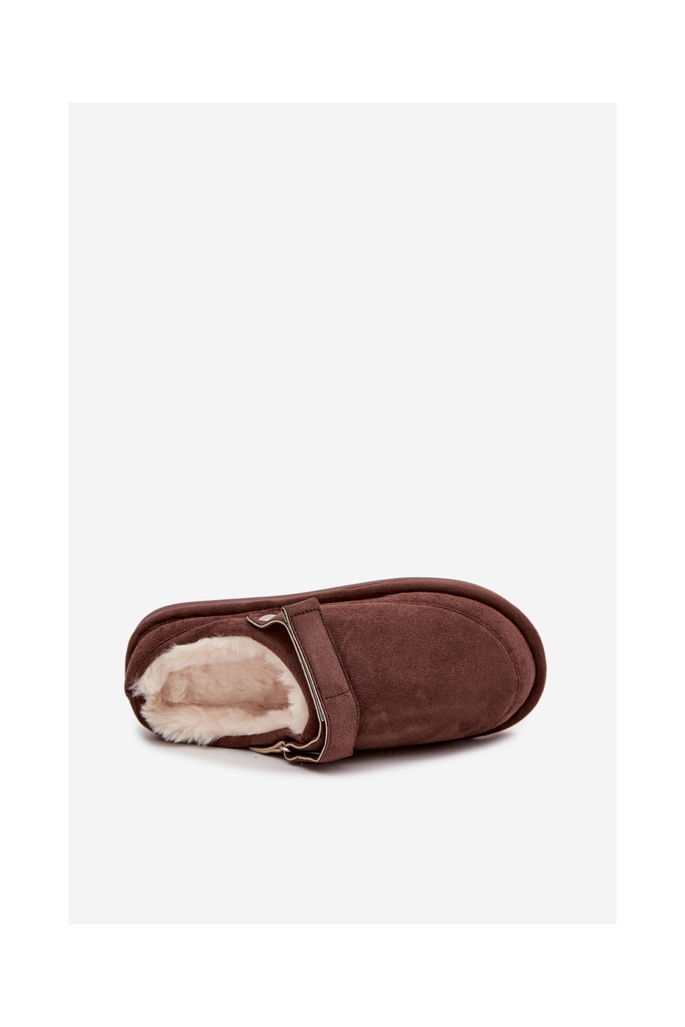 Pantofle s popruhy zateplené s kožešinou uvnitř Czekoladowe Rilena