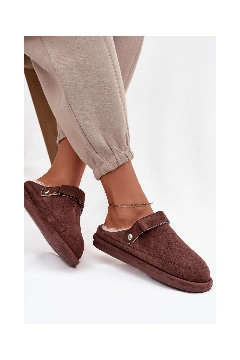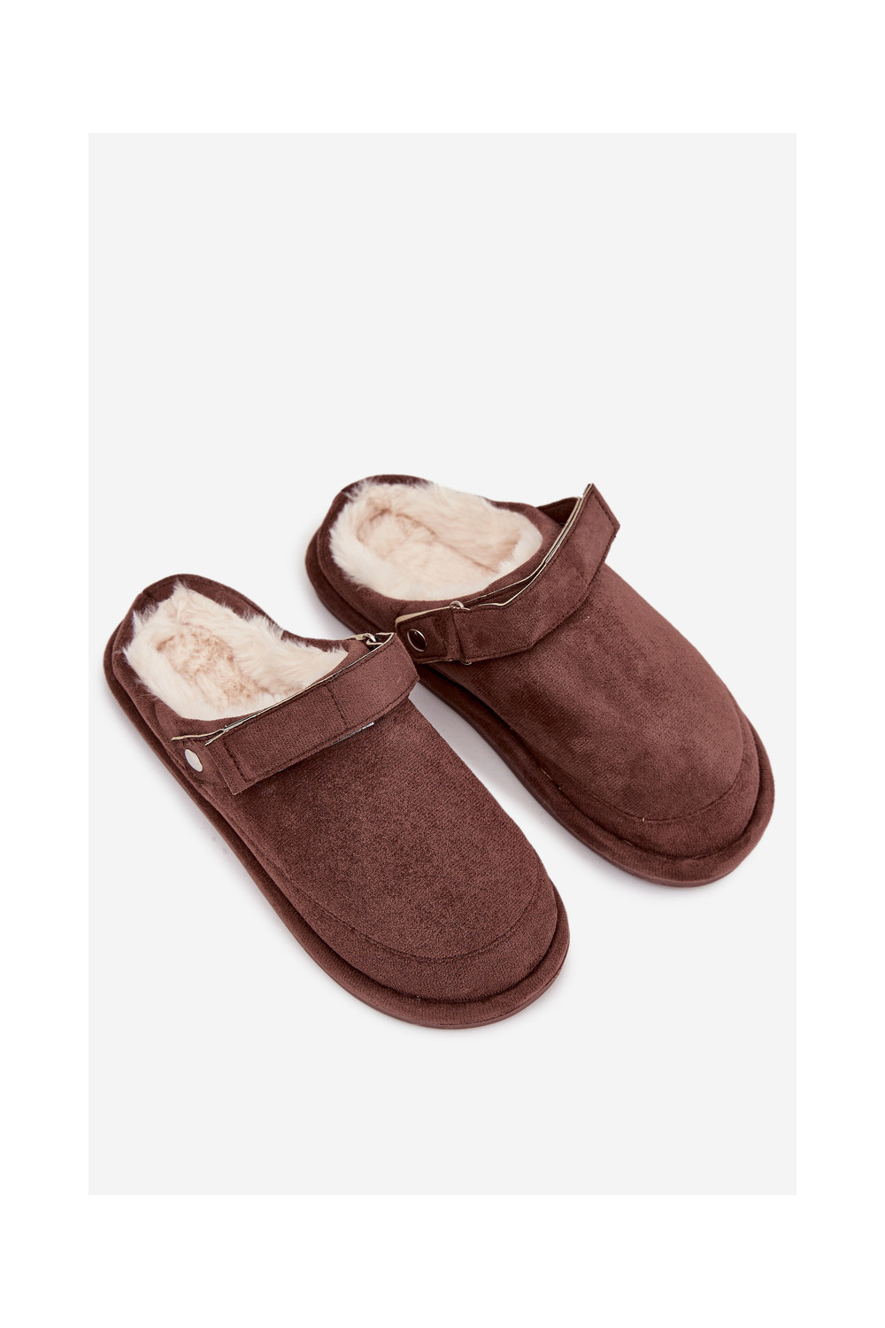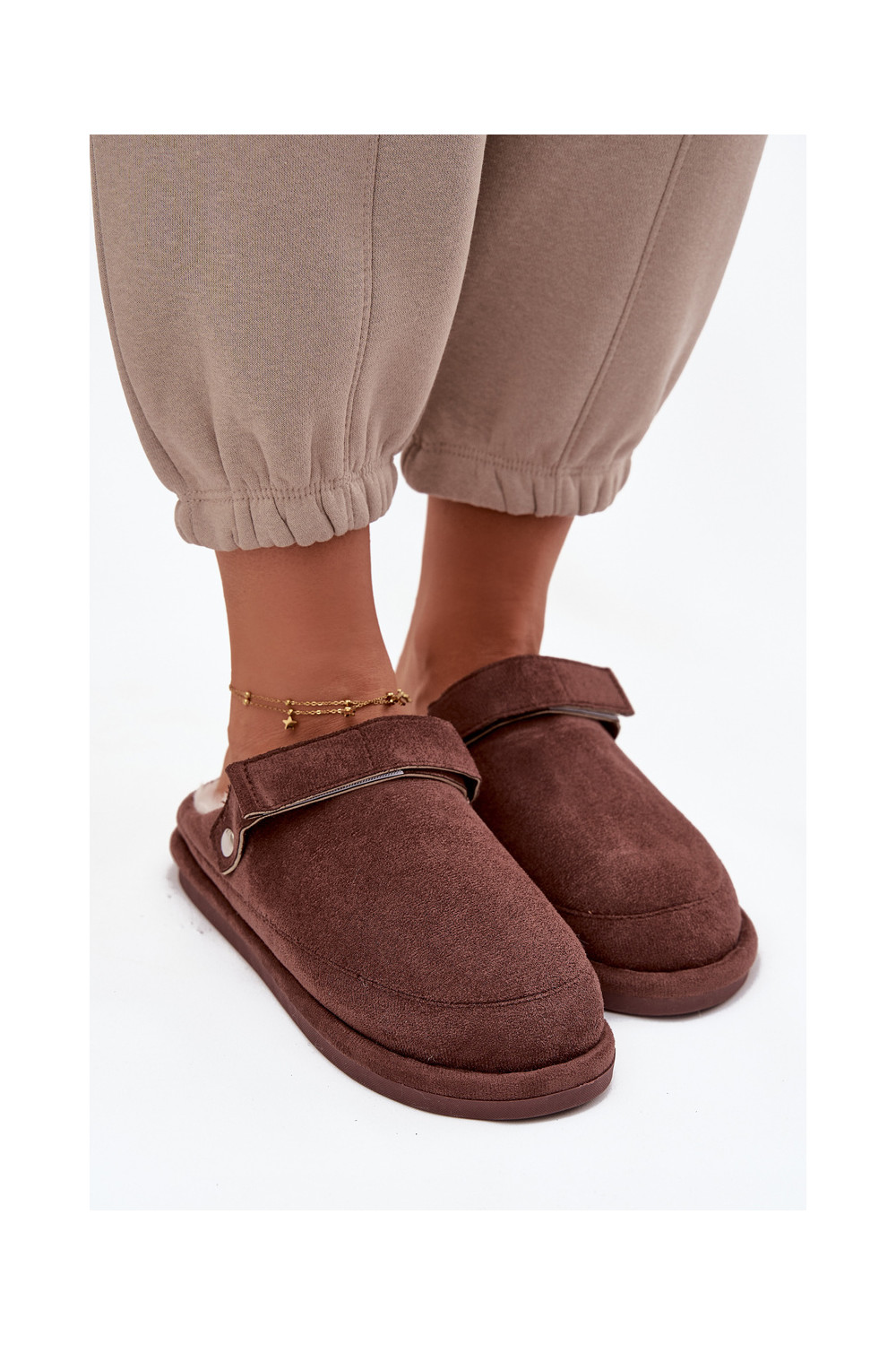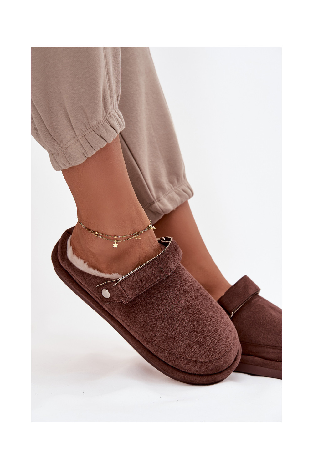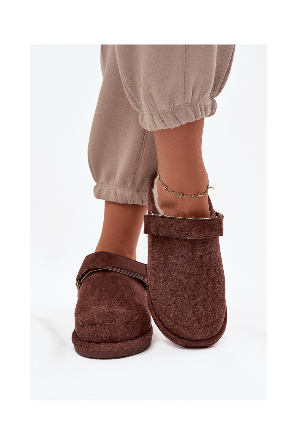 Pantofle s popruhy zateplené s kožešinou uvnitř Czekoladowe Rilena