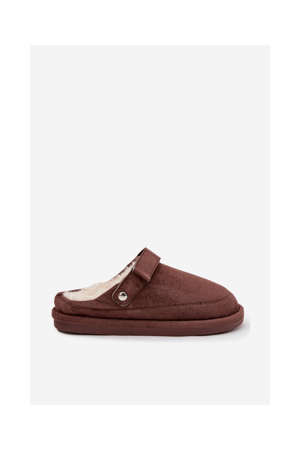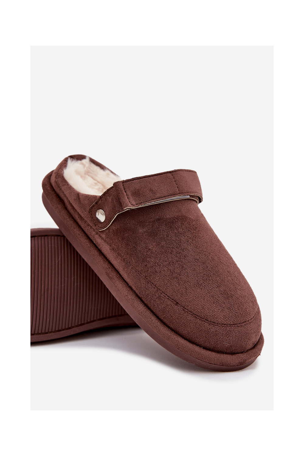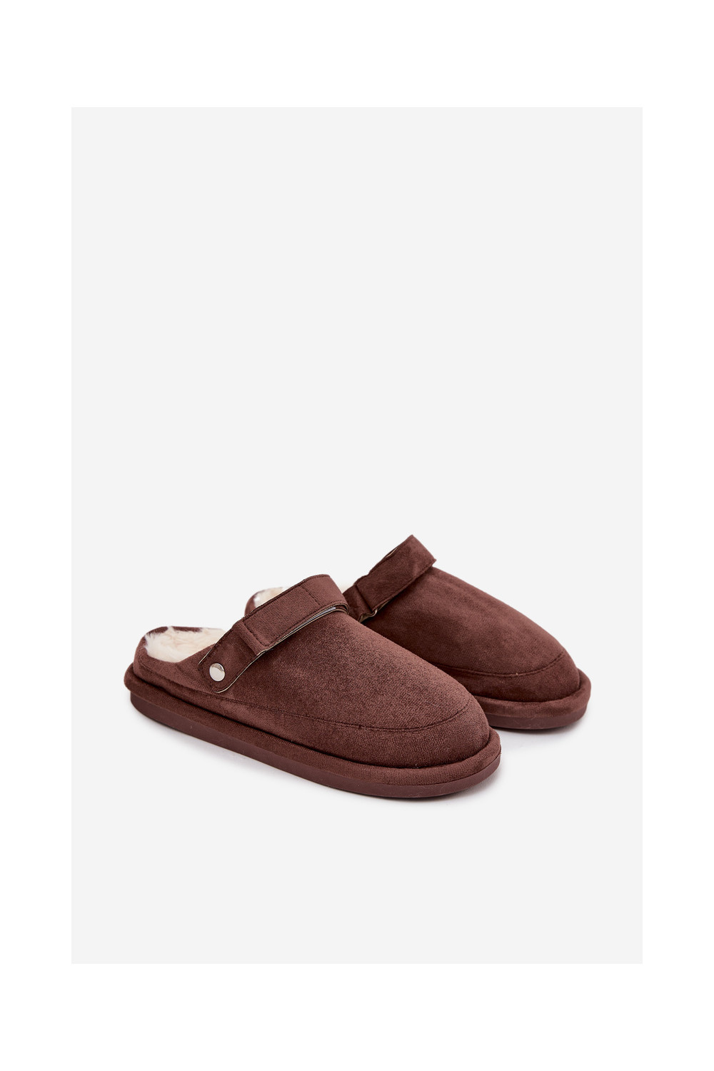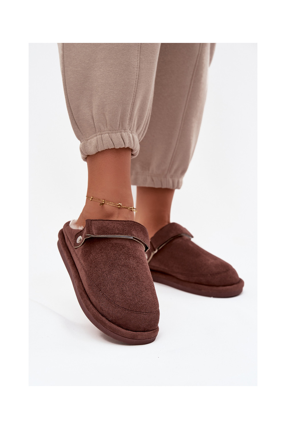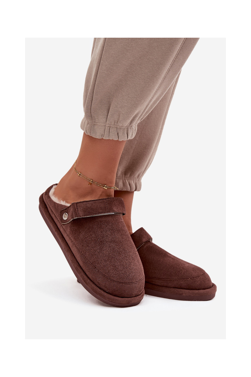 Pantofle s popruhy zateplené s kožešinou uvnitř Czekoladowe Rilena