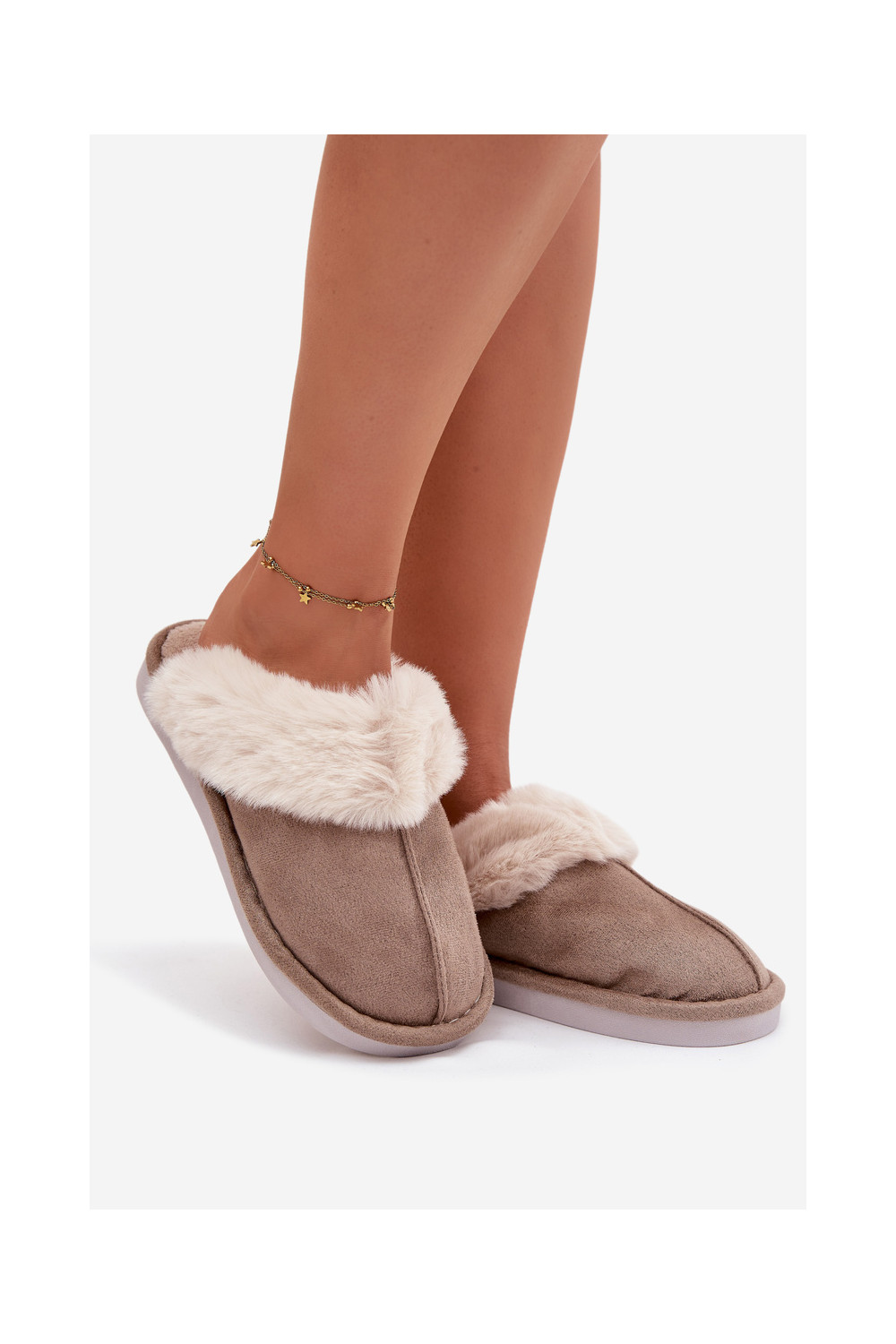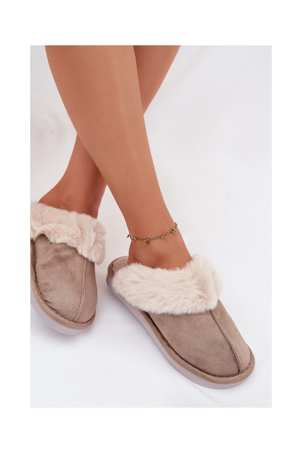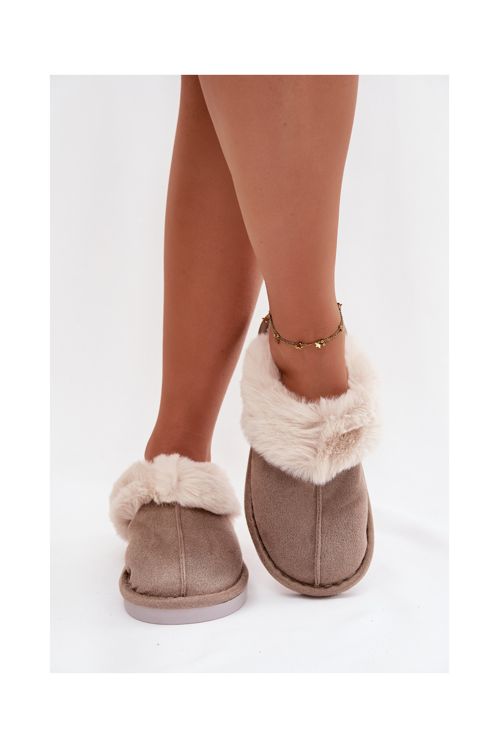 Pantofle s kožešinou khaki Carisse