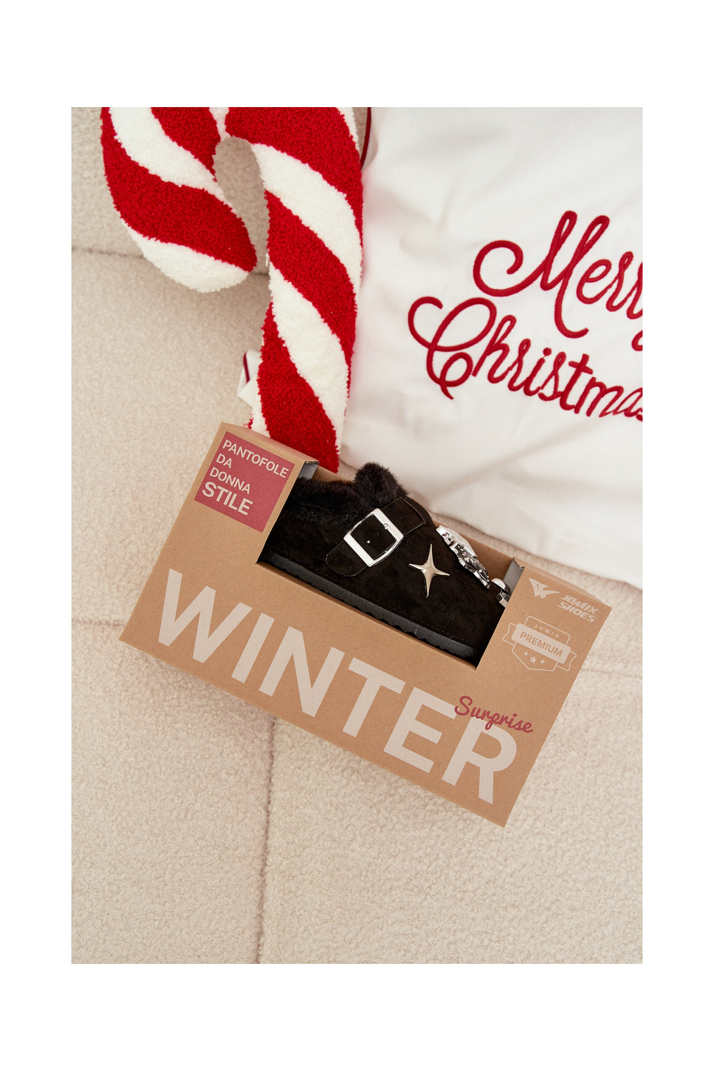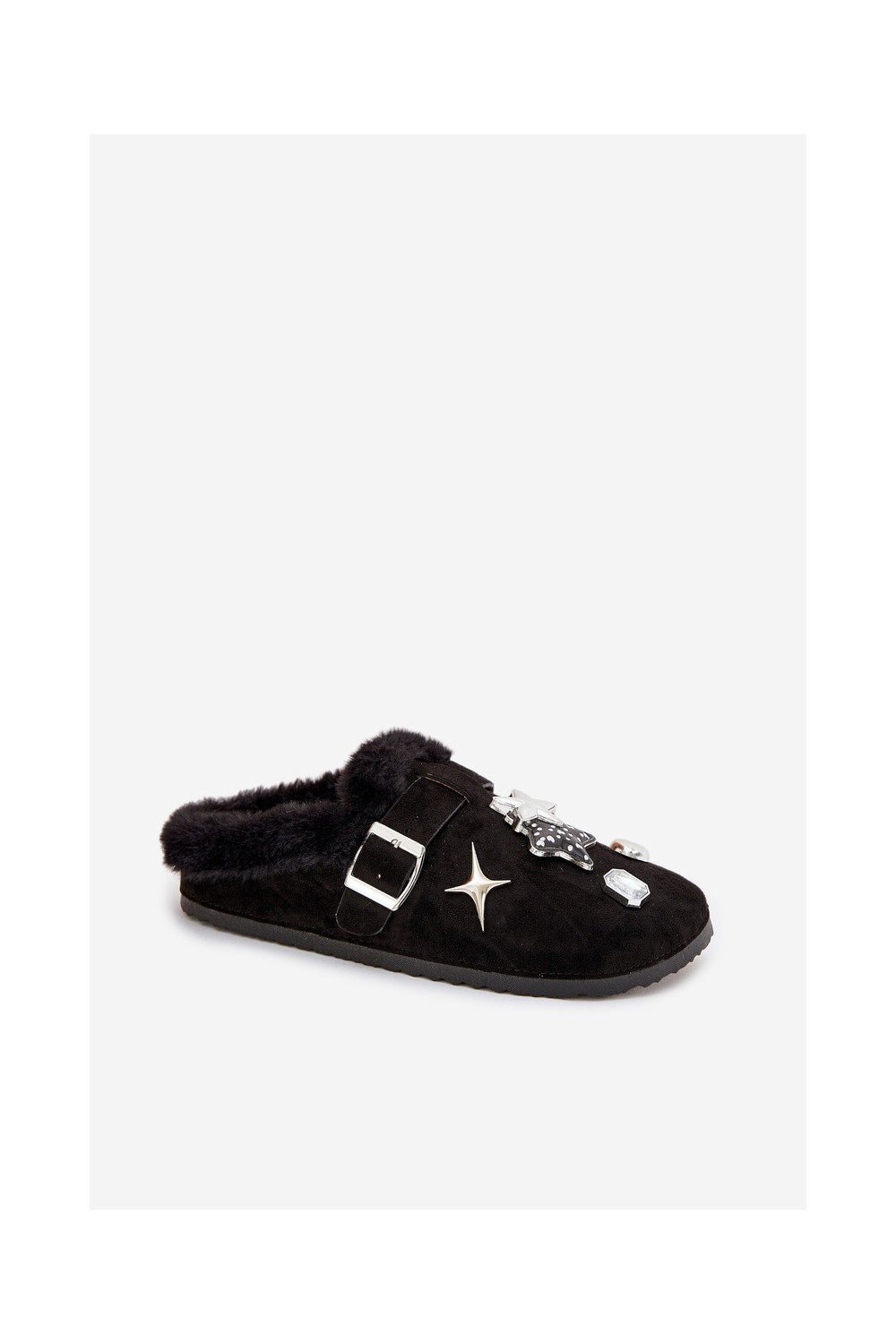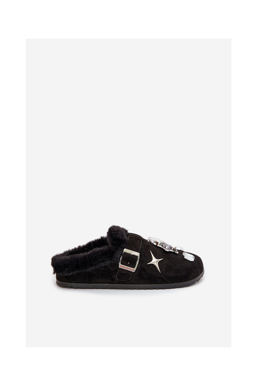 Pantofle  s pěknými detaily I s přezkami zateplené s kožešinou uvnitř Černé Thalora