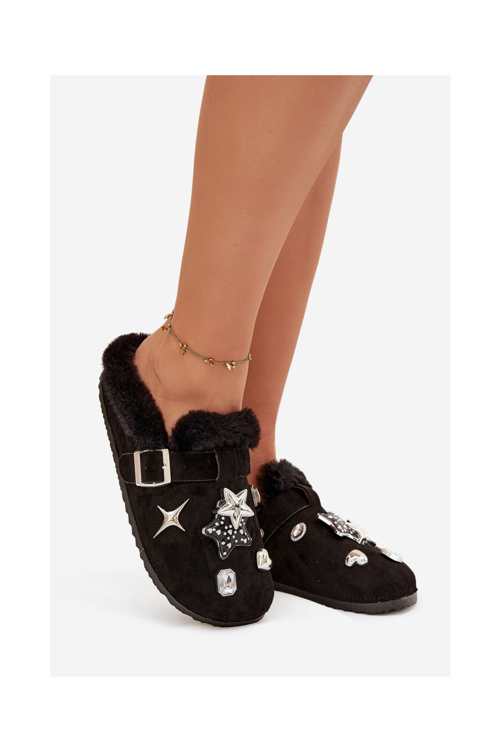 Pantofle s pěknými detaily I s přezkami zateplené s kožešinou uvnitř Černé Thalora