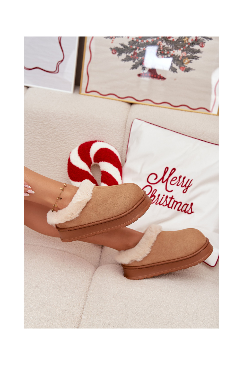 Pantofle s kožešinou hnědáEveline