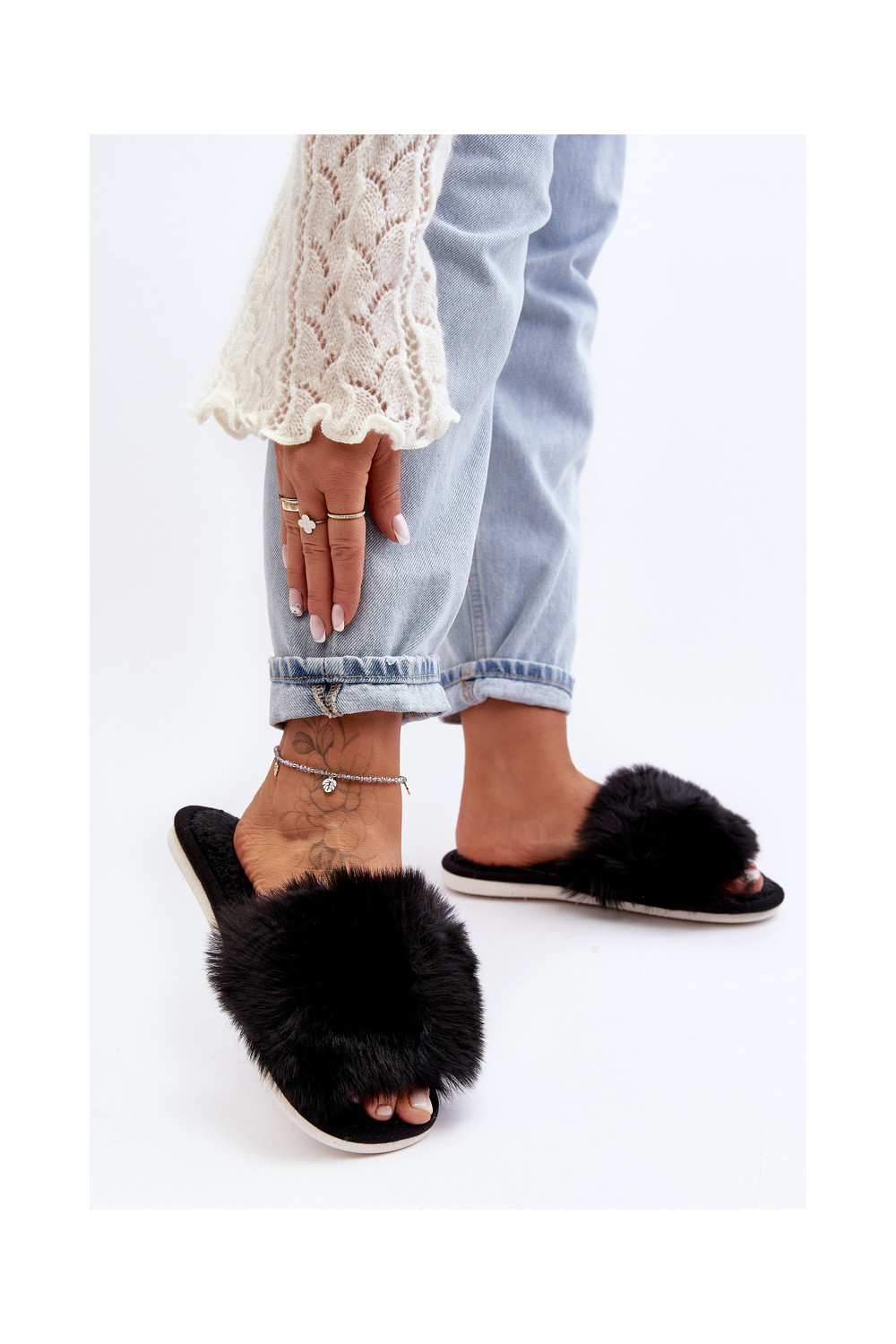 Pantofle s kožešinou Černé Vienitta