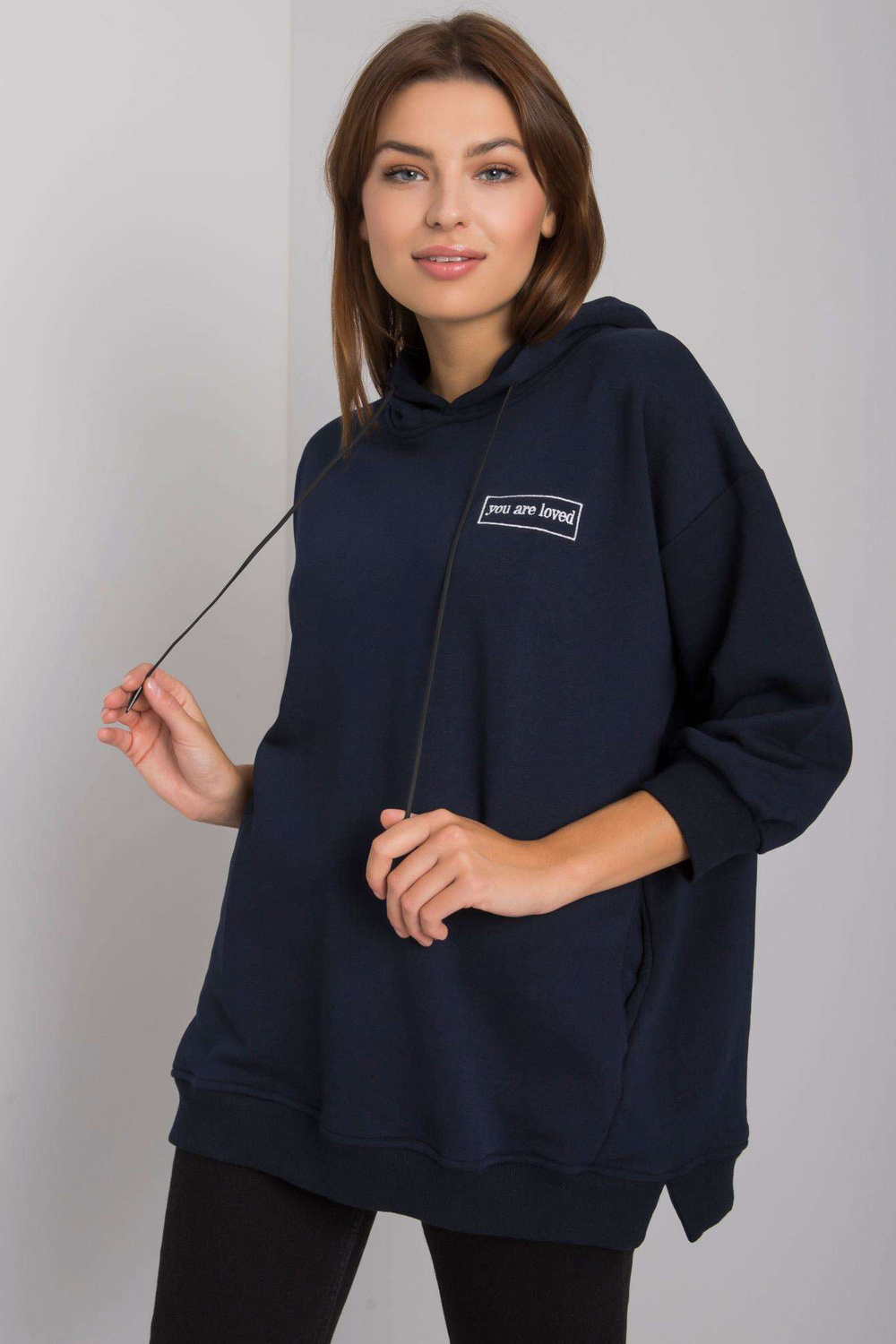 Rozměry jedné velikosti mikiny měřeny naplocho: šířka v podpaží - 58 cm, celková délka - 68 cm, délka rukávu - 49 cm