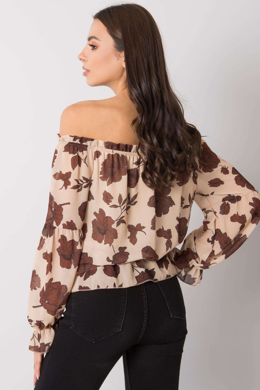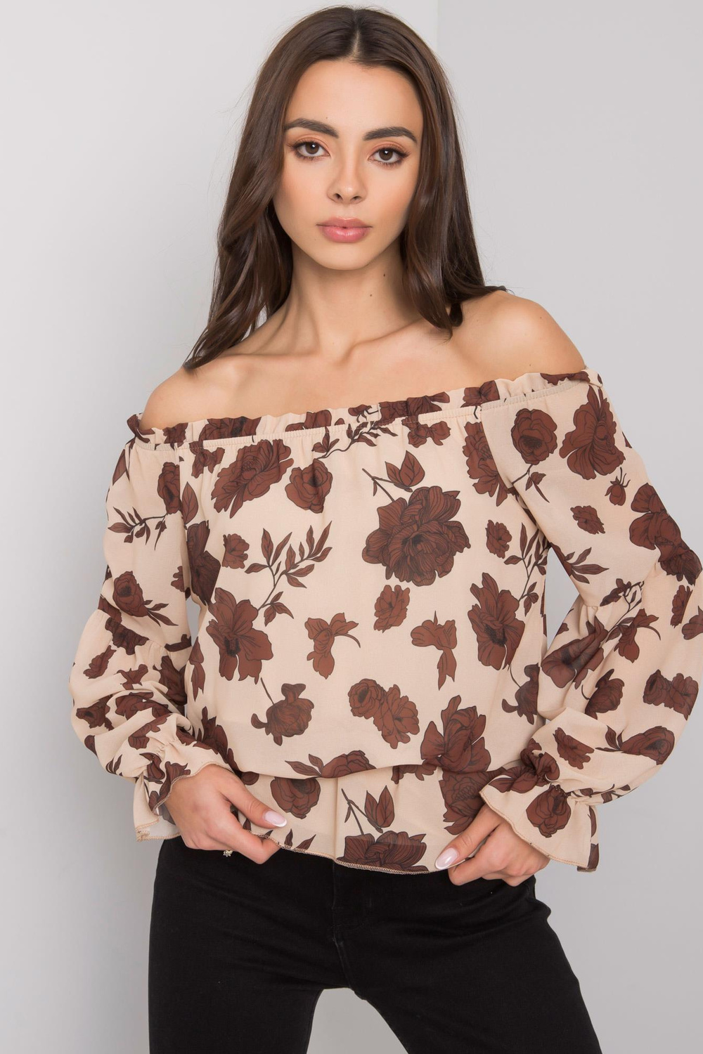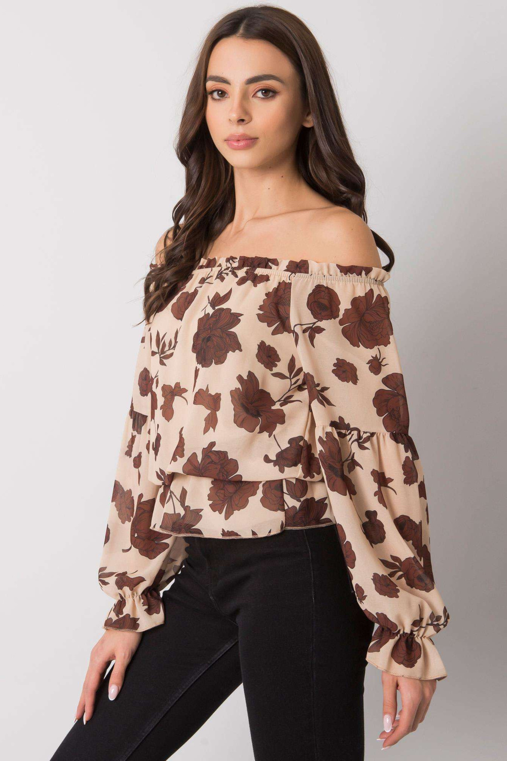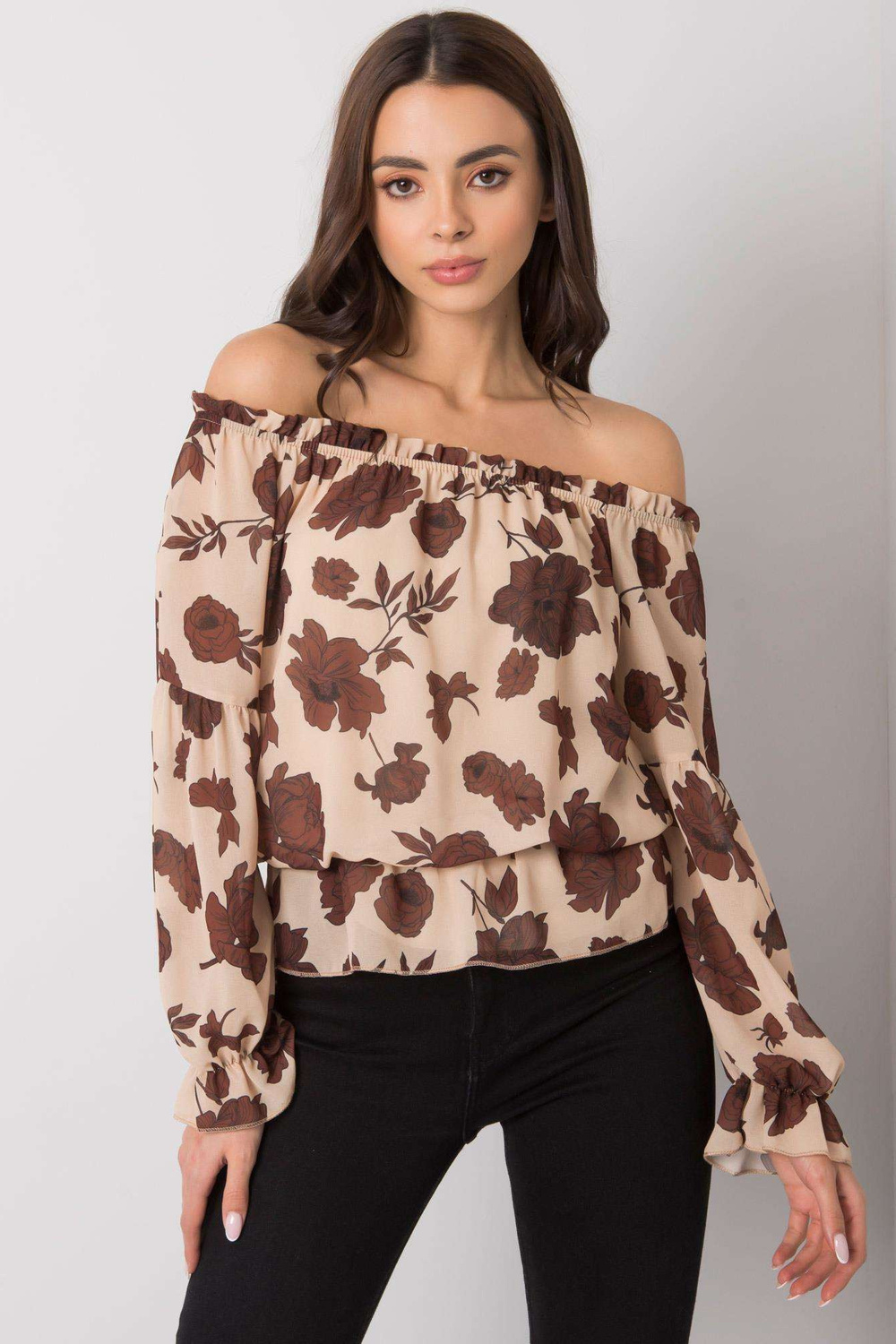 Béžová a hnědá španělská halenka s květinami Orléans.
