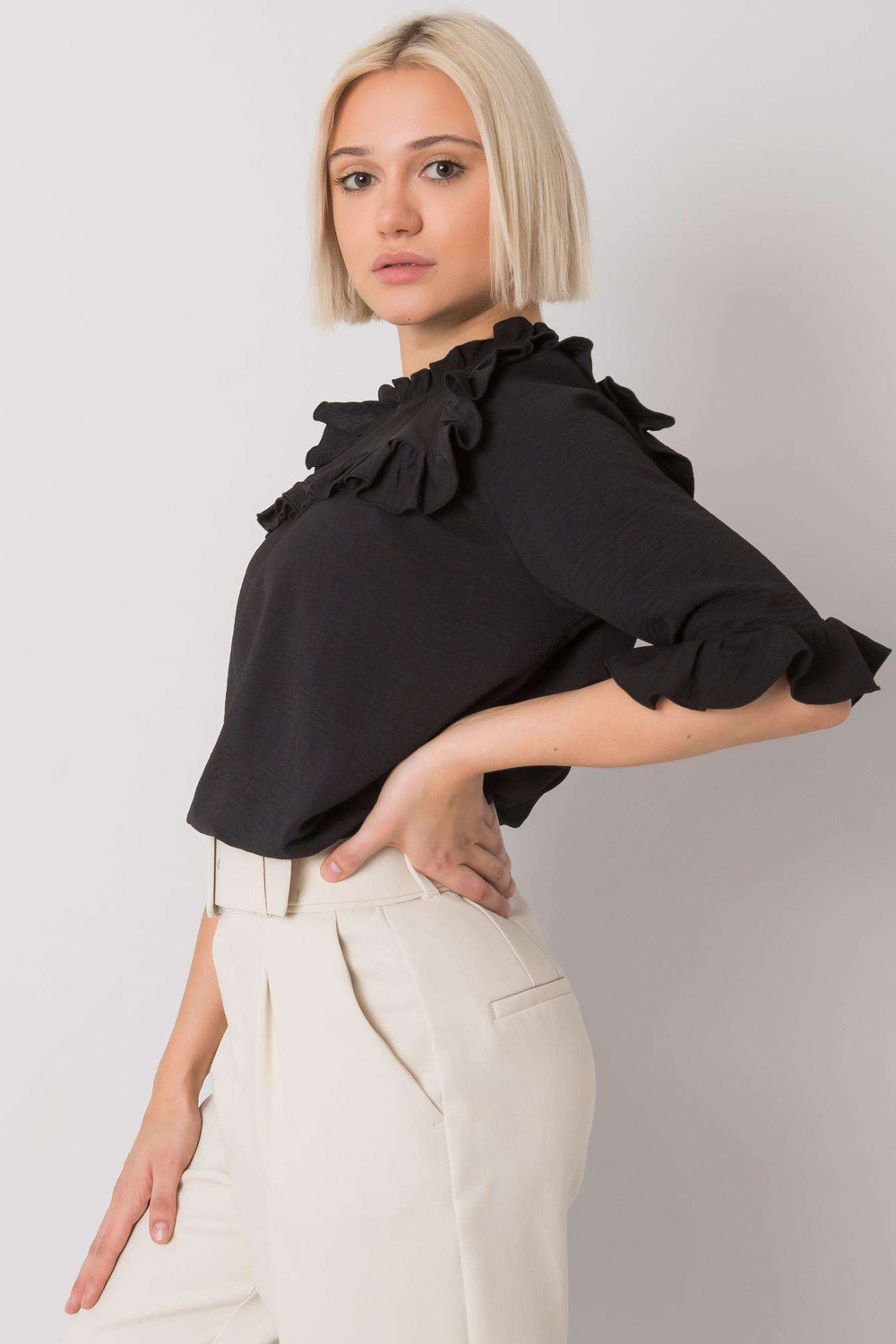 Rozměry halenky velikosti S/M měřeny naplocho: šířka v podpaží - 54 cm, celková délka - 52 cm, délka rukávu - 31 cm.