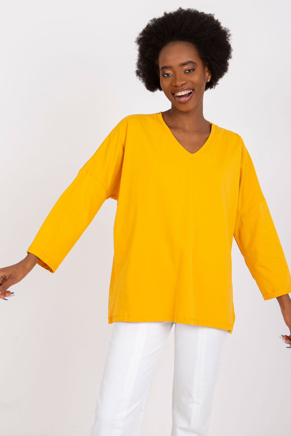 Rozměry halenky velikosti S/M měřeny naplocho: šířka v podpaží - 60 cm, celková délka - 63 cm, délka rukávu - 46 cm.