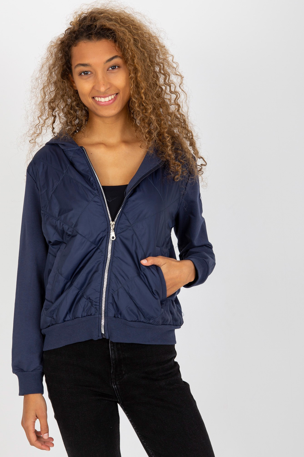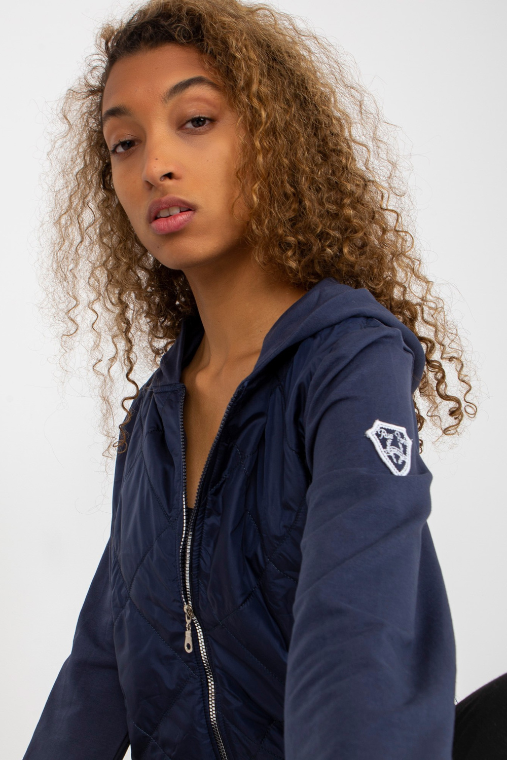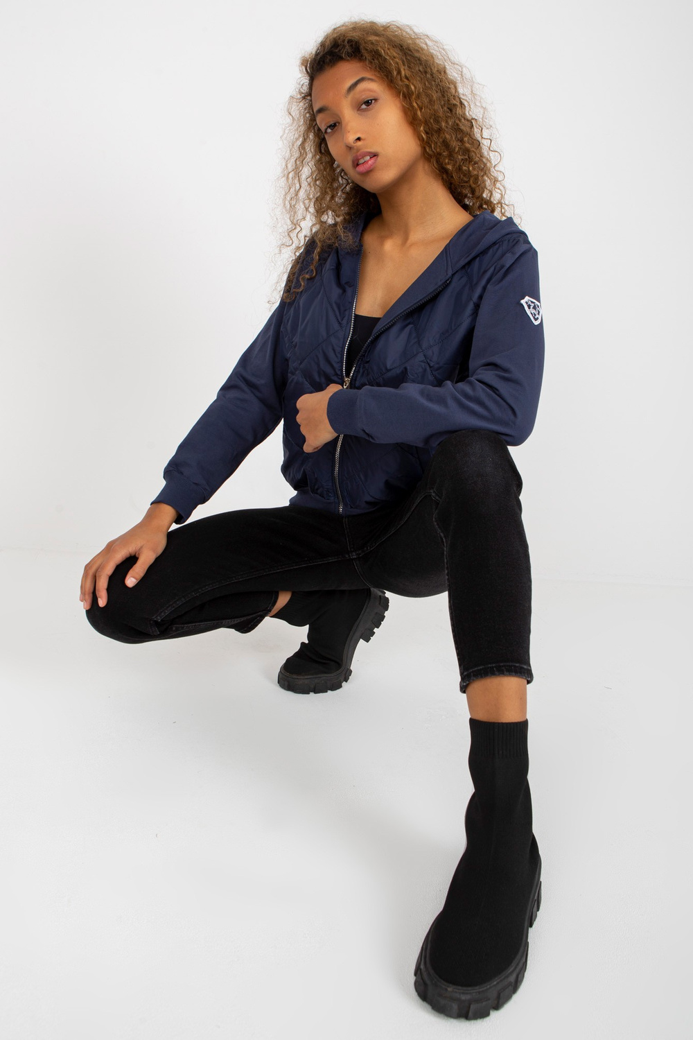 Námořnická modrá prošívaná bomber s kapucí RUE PARIS.