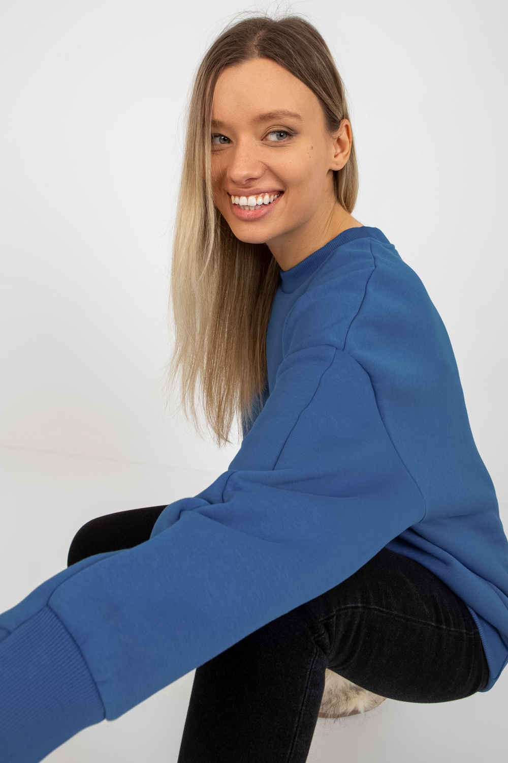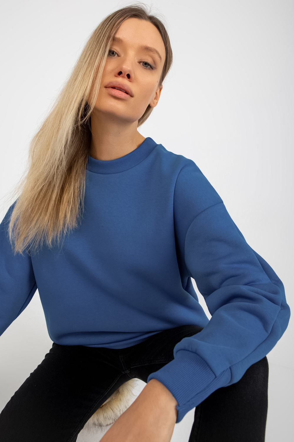 Tmavě modrá mikina basic s kulatým výstřihem. Kód produktu: RV-BL-8360.80P dominantní vzor: hladký Styl: ležérní příležitost: ležérní, do města, na procházku Modelka má na sobě velikost jedna. Rozměry modelu: výška 178 cm, prsa 89 cm, pas 65