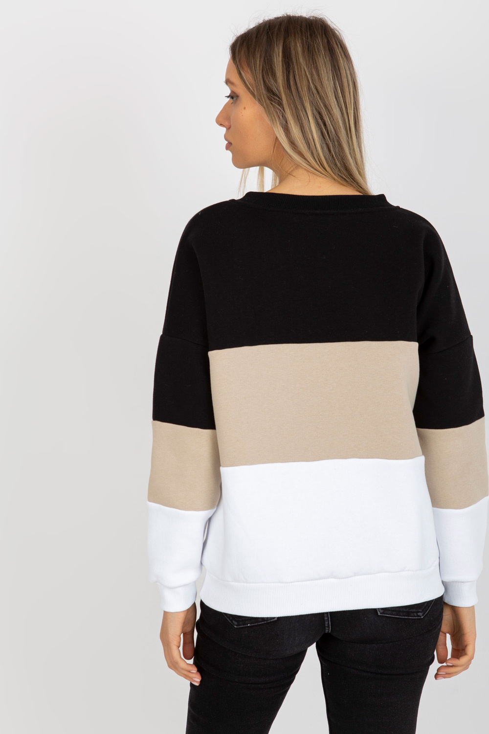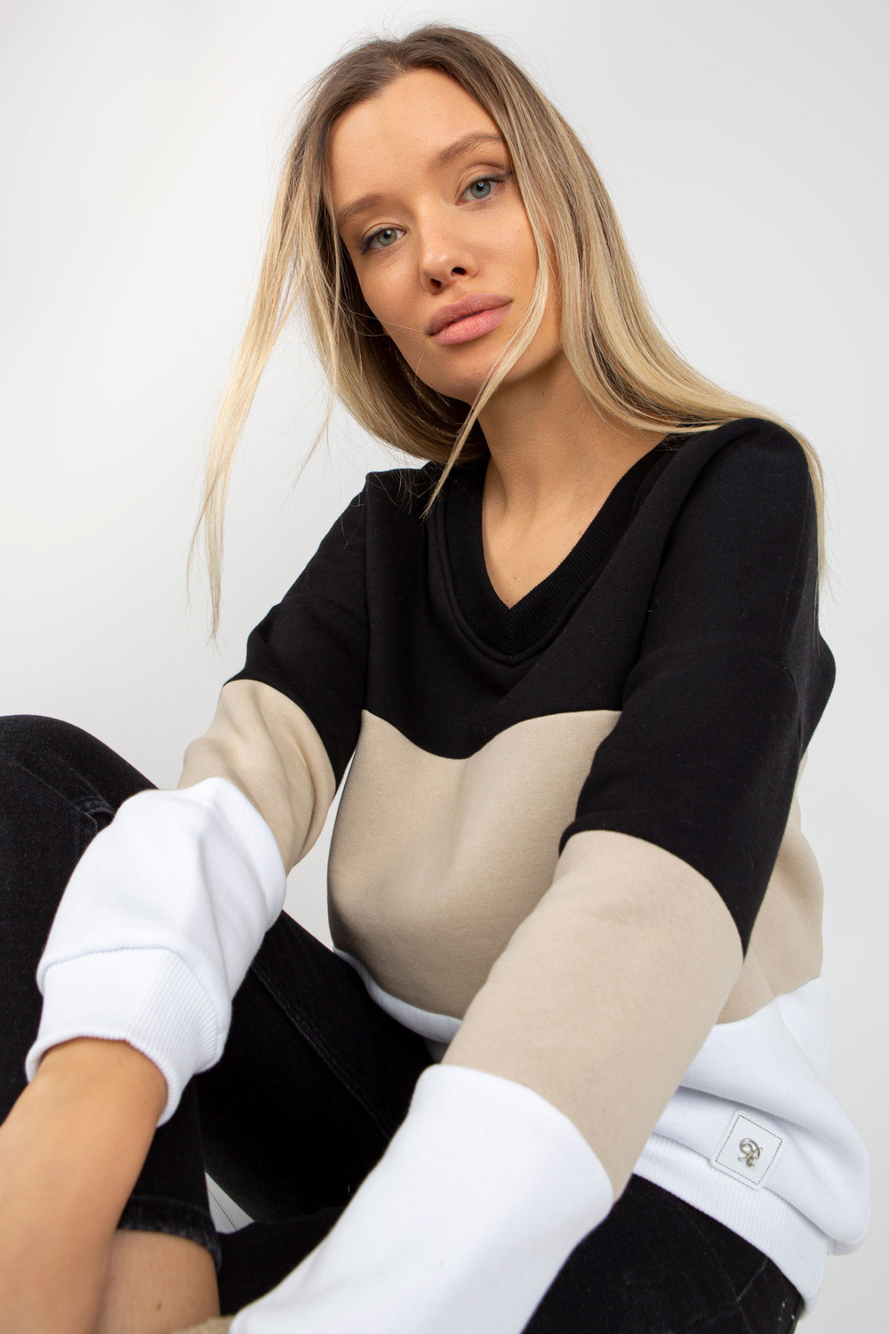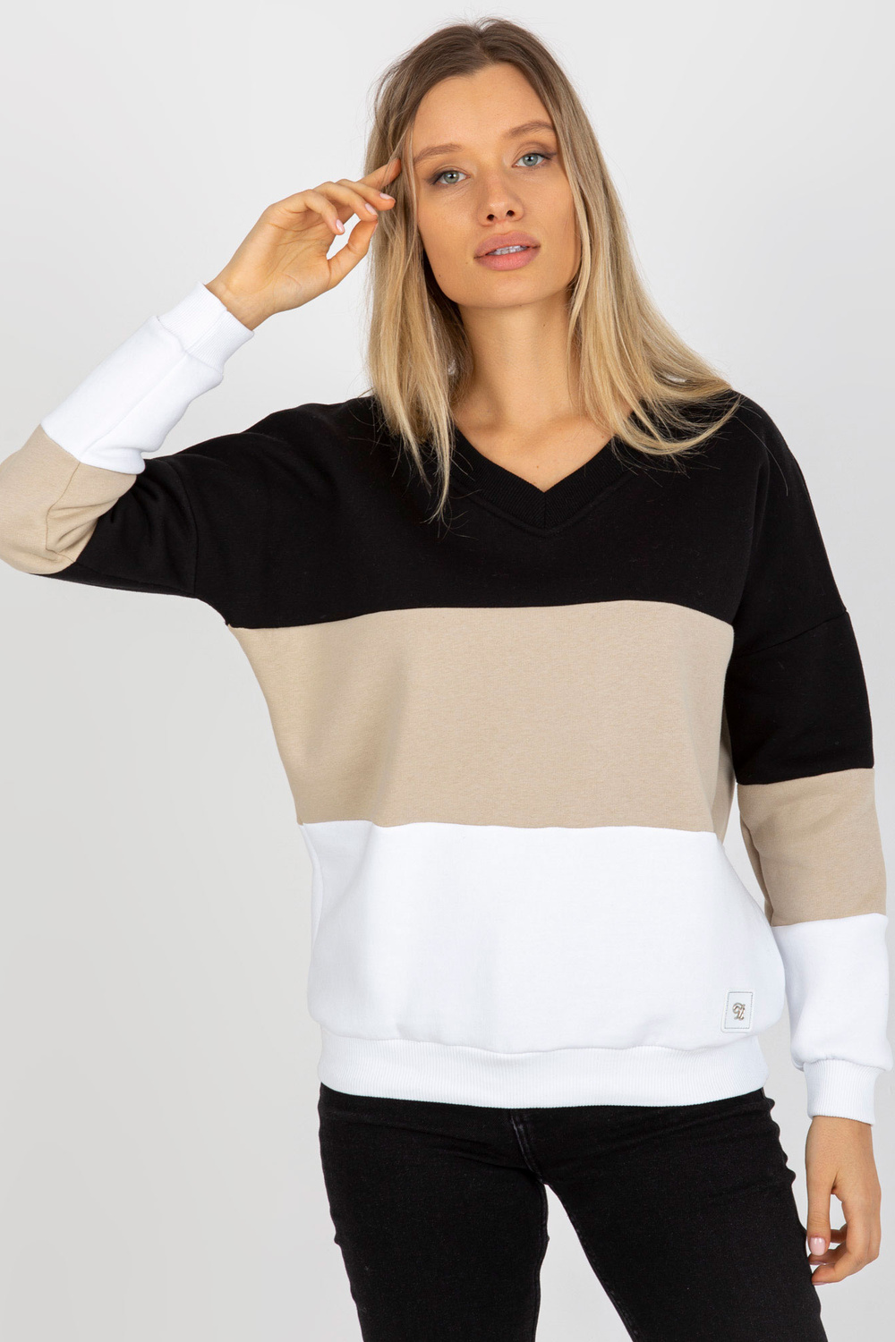 Černo-béžová mikina basic s výstřihem do V.