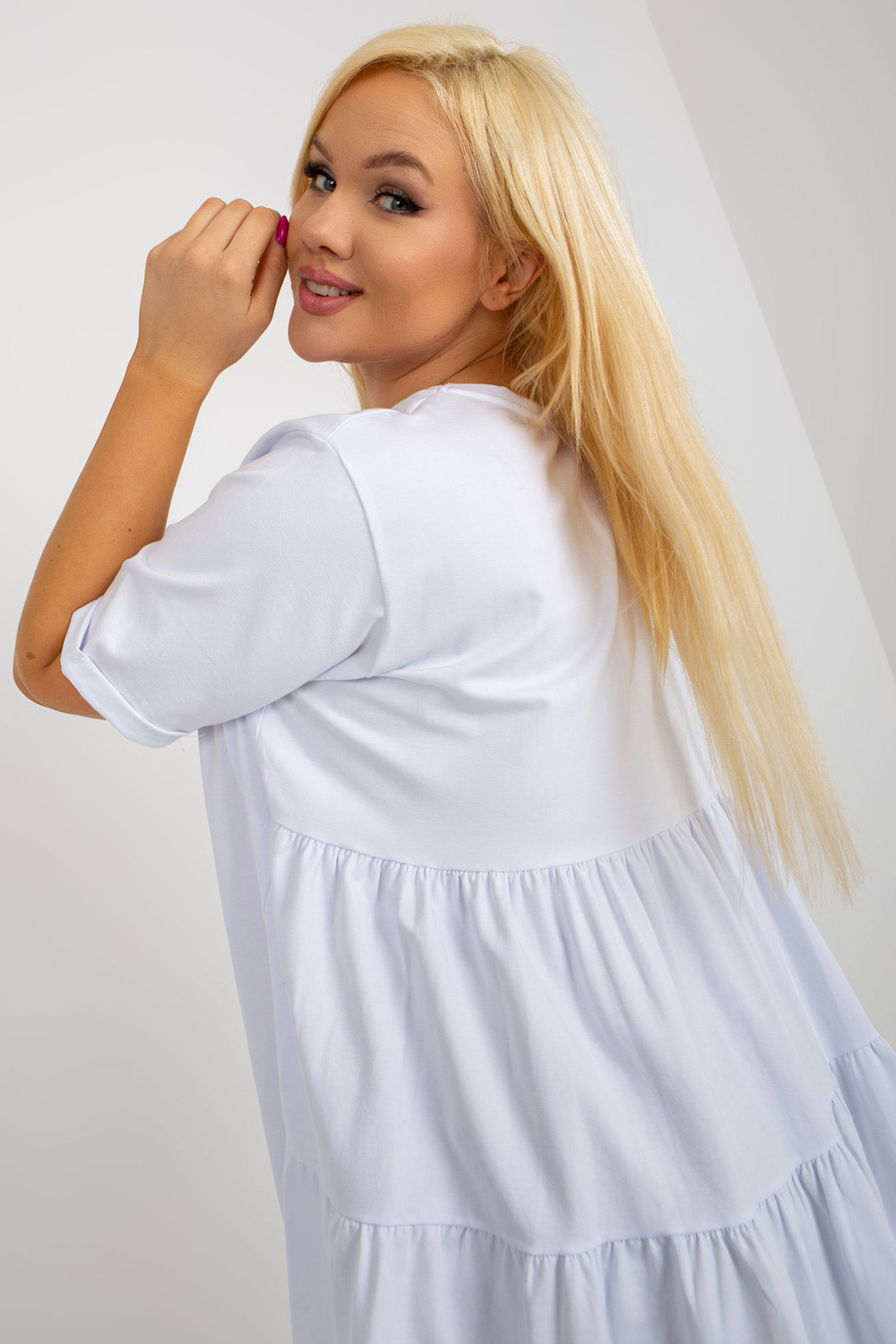 Bílá dlouhá halenka větší velikosti basic s volánem.