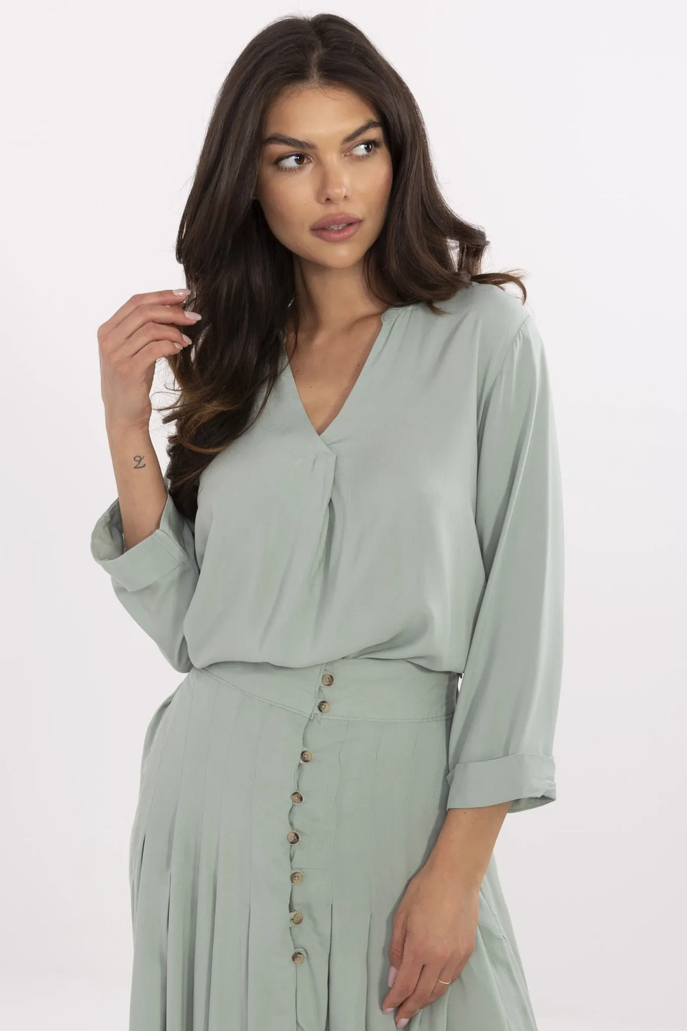 Míry halenky ve velikosti one size měřeno bez rukávů: šířka v podpaží - 56 cm, délka rukávu - 46 cm (od švu), celková délka - 68 cm (vpředu), celková délka - 72 cm (vzadu), šířka boků - 59 cm.