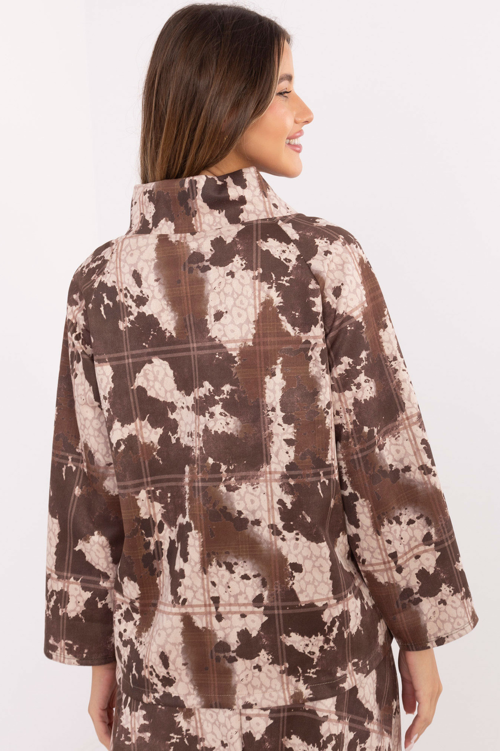Rozměry pláště v univerzální velikosti měřeno naplocho: šířka pod pažemi – 58 cm, délka rukávu – 60 cm (od švu), šířka přes boky – 57 cm, celková délka – 76 cm (pravá strana), celková délka – 60 cm (levá strana).