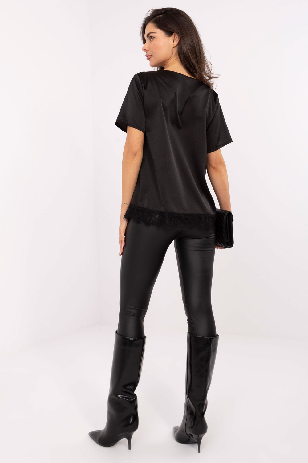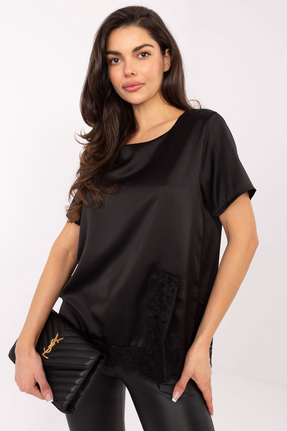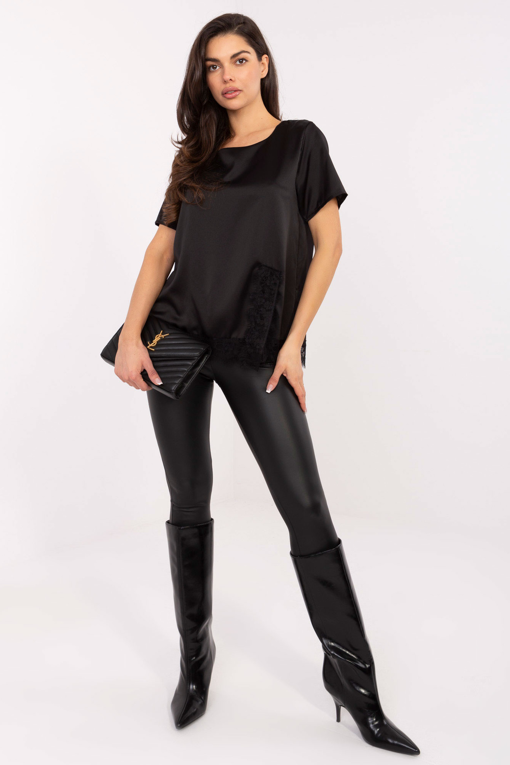 Modelka má na sobě oděv jedné velikosti. Rozměry modelky: výška 173 cm, hrudník 85 cm, pas 62 cm, boky 95 cm.