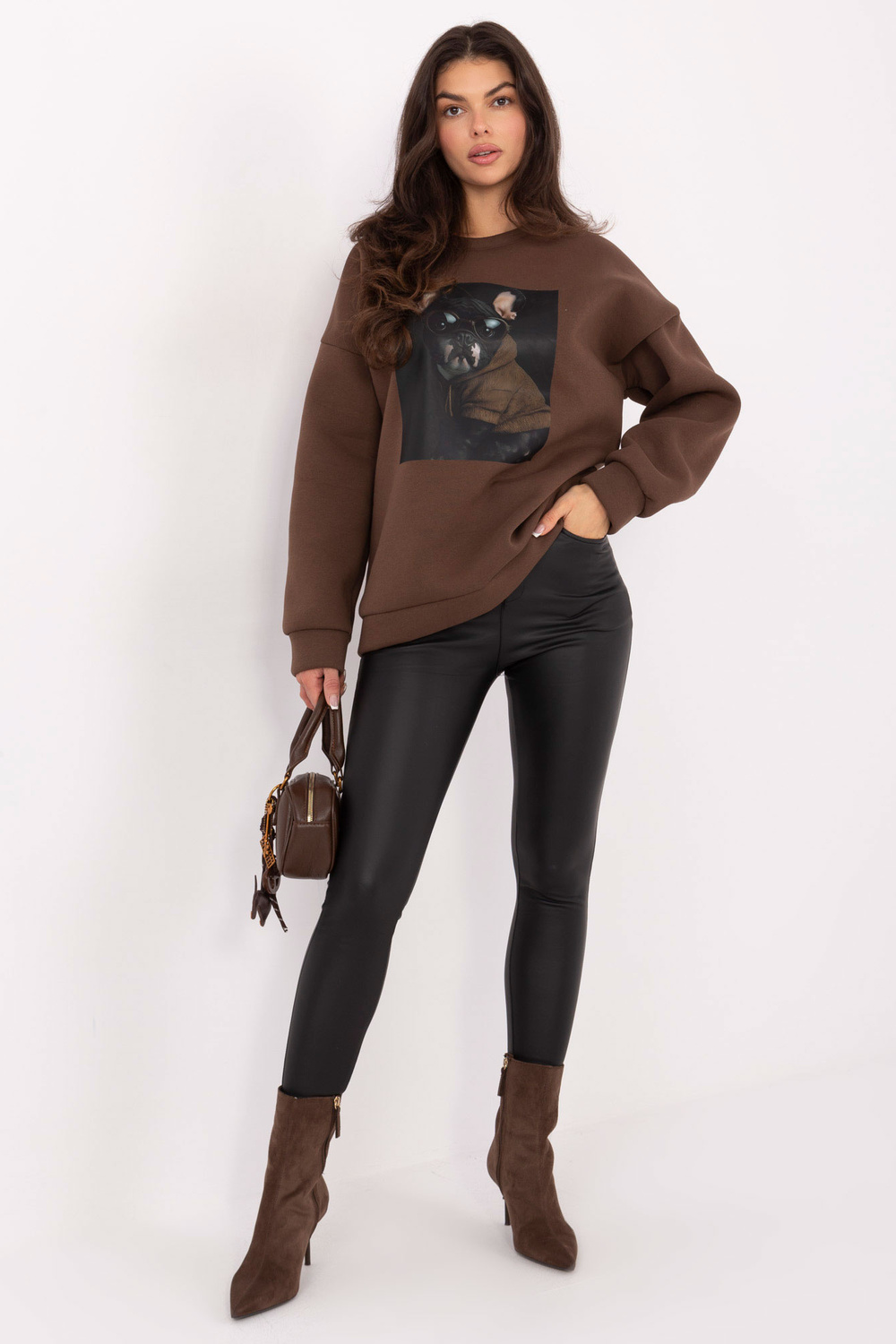 Modelka má na sobě oblečení velikosti one size. Rozměry modelky: výška 173 cm, hrudník 85 cm, pas 62 cm, boky 95 cm.