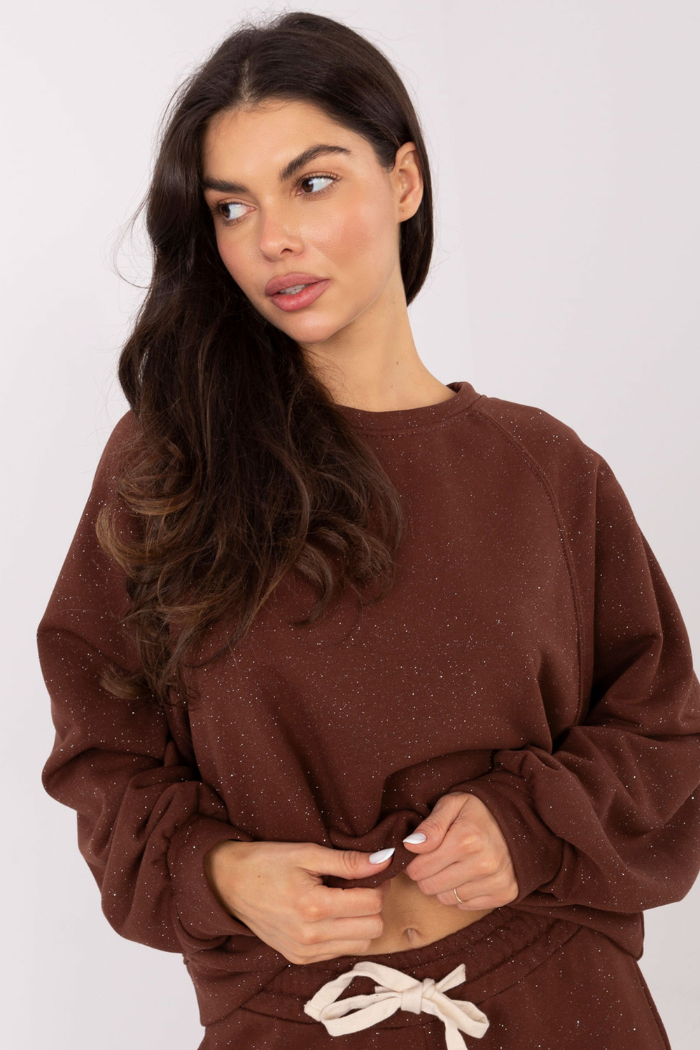 Modelka má na sobě oděv one size. Rozměry modelky: výška 173 cm, obvod hrudníku 85 cm, pas 62 cm, boky 95 cm.
