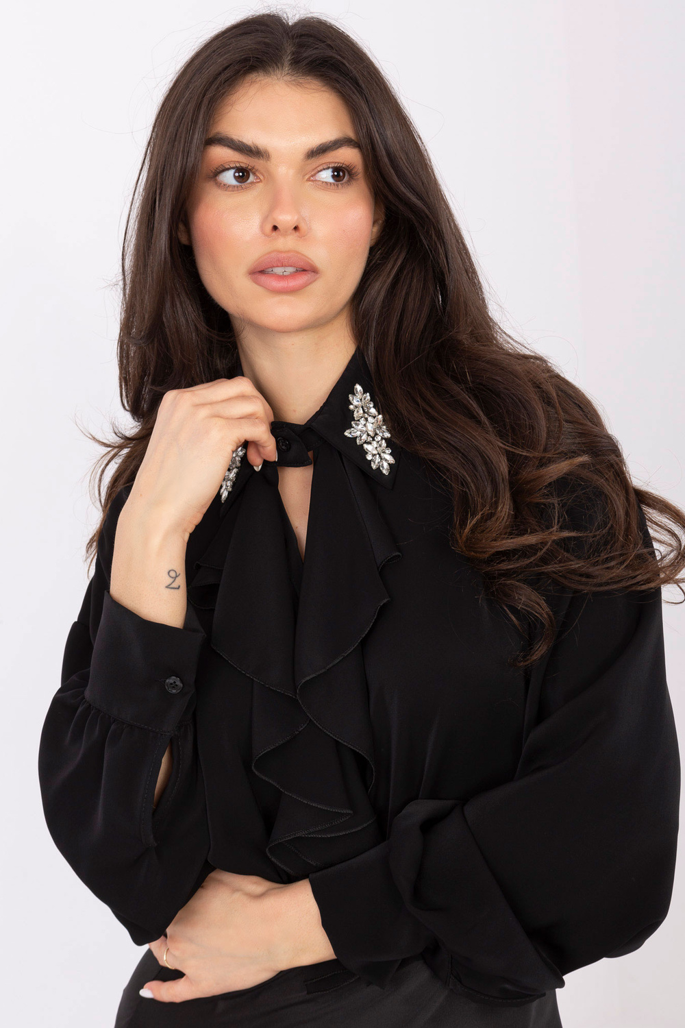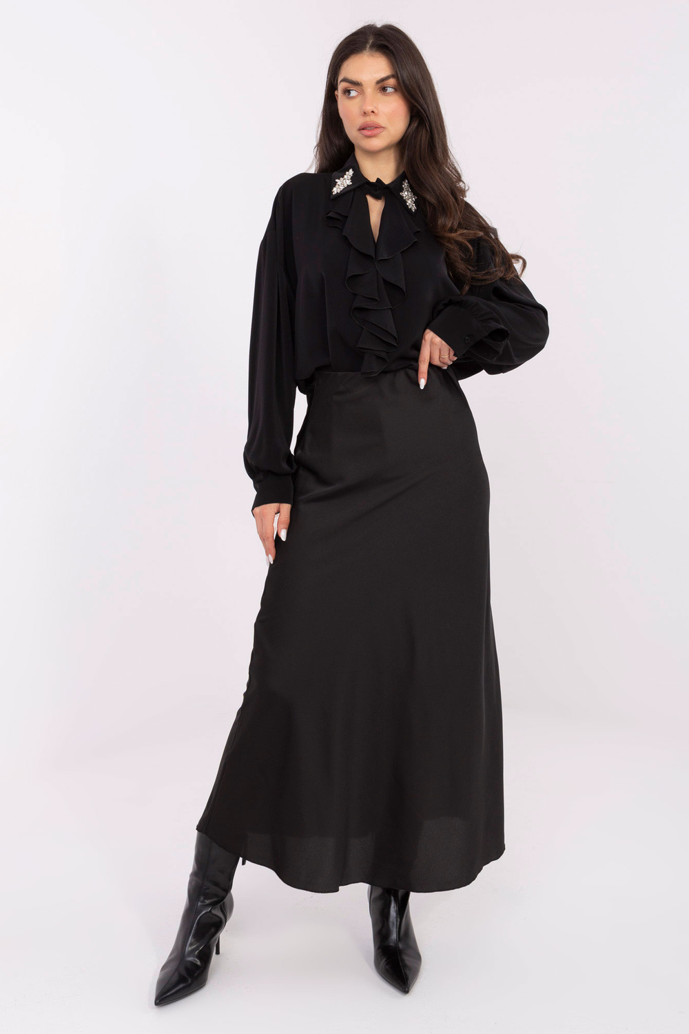 Modelka má na sobě oděv jedné velikosti. Rozměry modelky: výška 173 cm, hrudník 85 cm, pas 62 cm, boky 95 cm.
