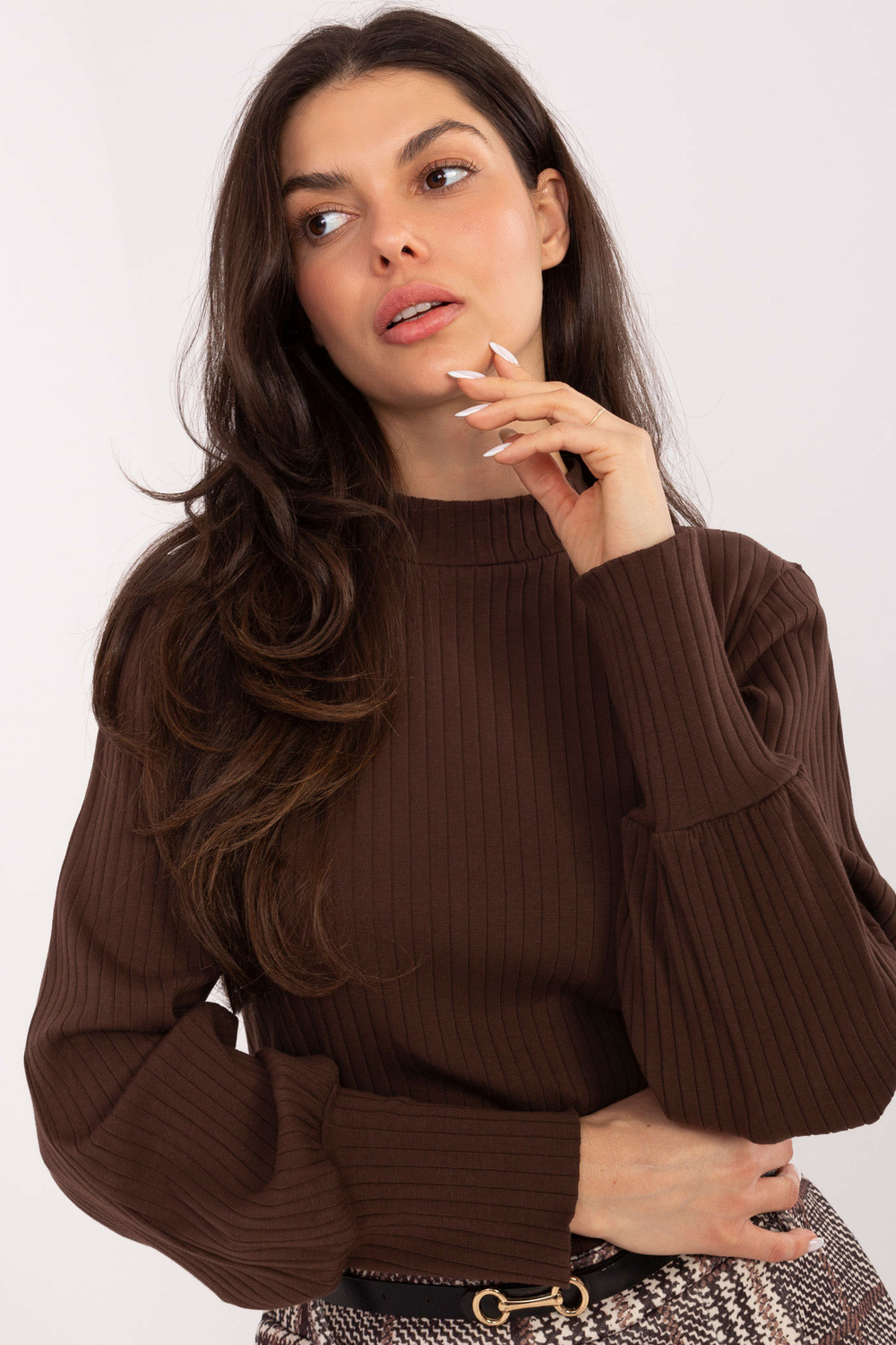 Modelka má na sobě oblečení jedné velikosti. Rozměry modelky: výška 173 cm, hrudník 85 cm, pas 62 cm, boky 95 cm.