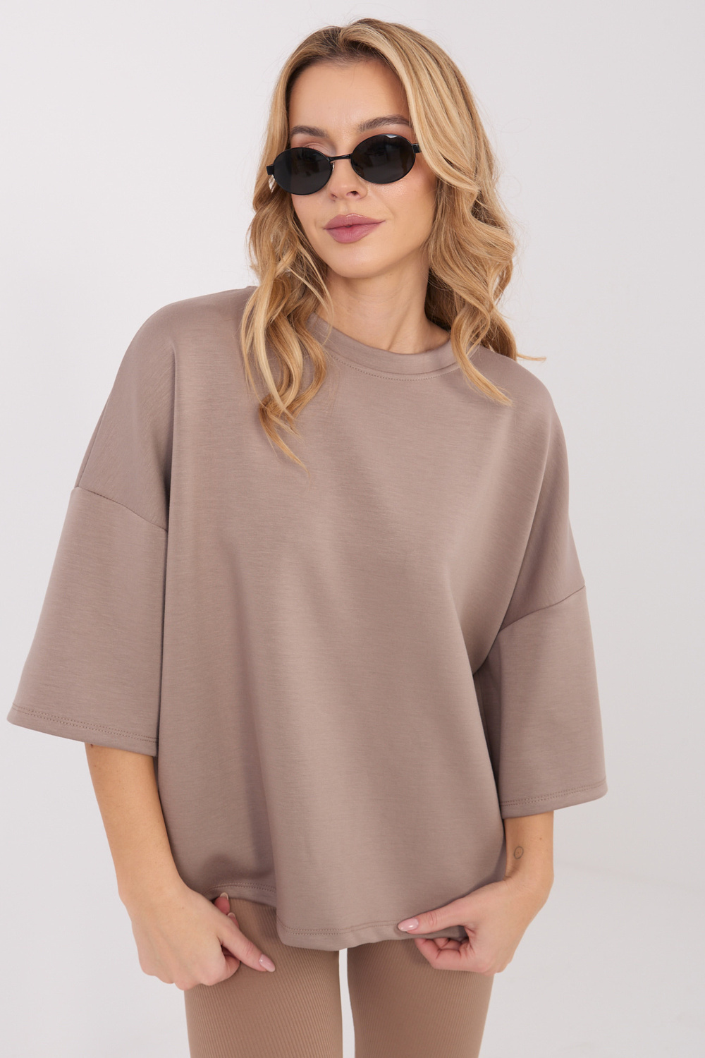 Model nosí oblečení one size. Rozměry modelu: výška 169 cm, prsa 88 cm, pas 68 cm, boky 89 cm.