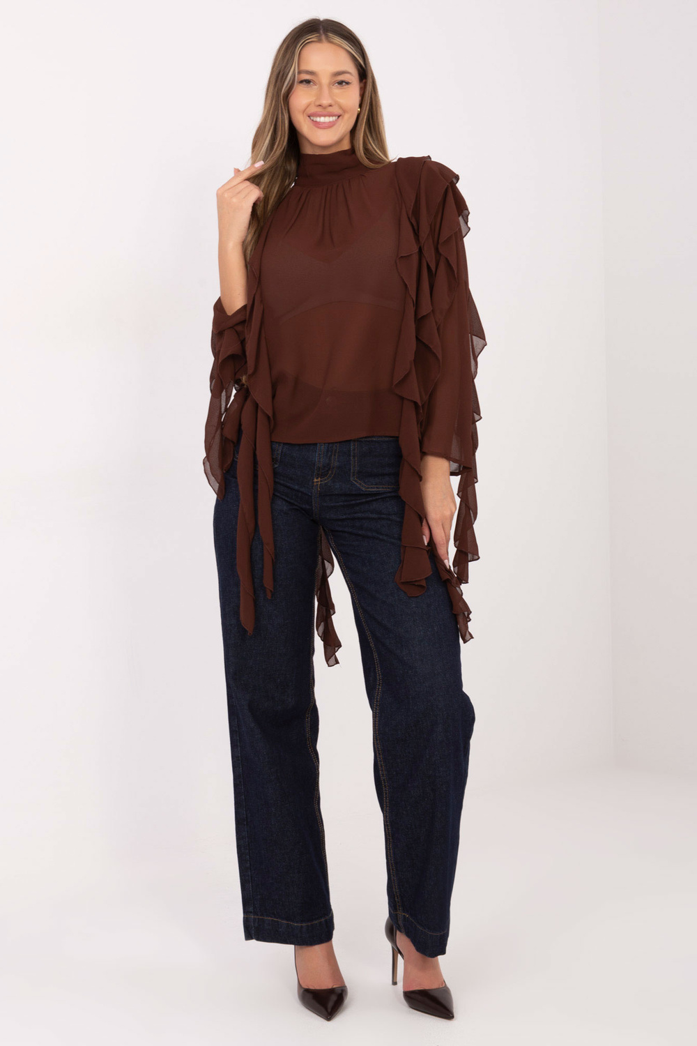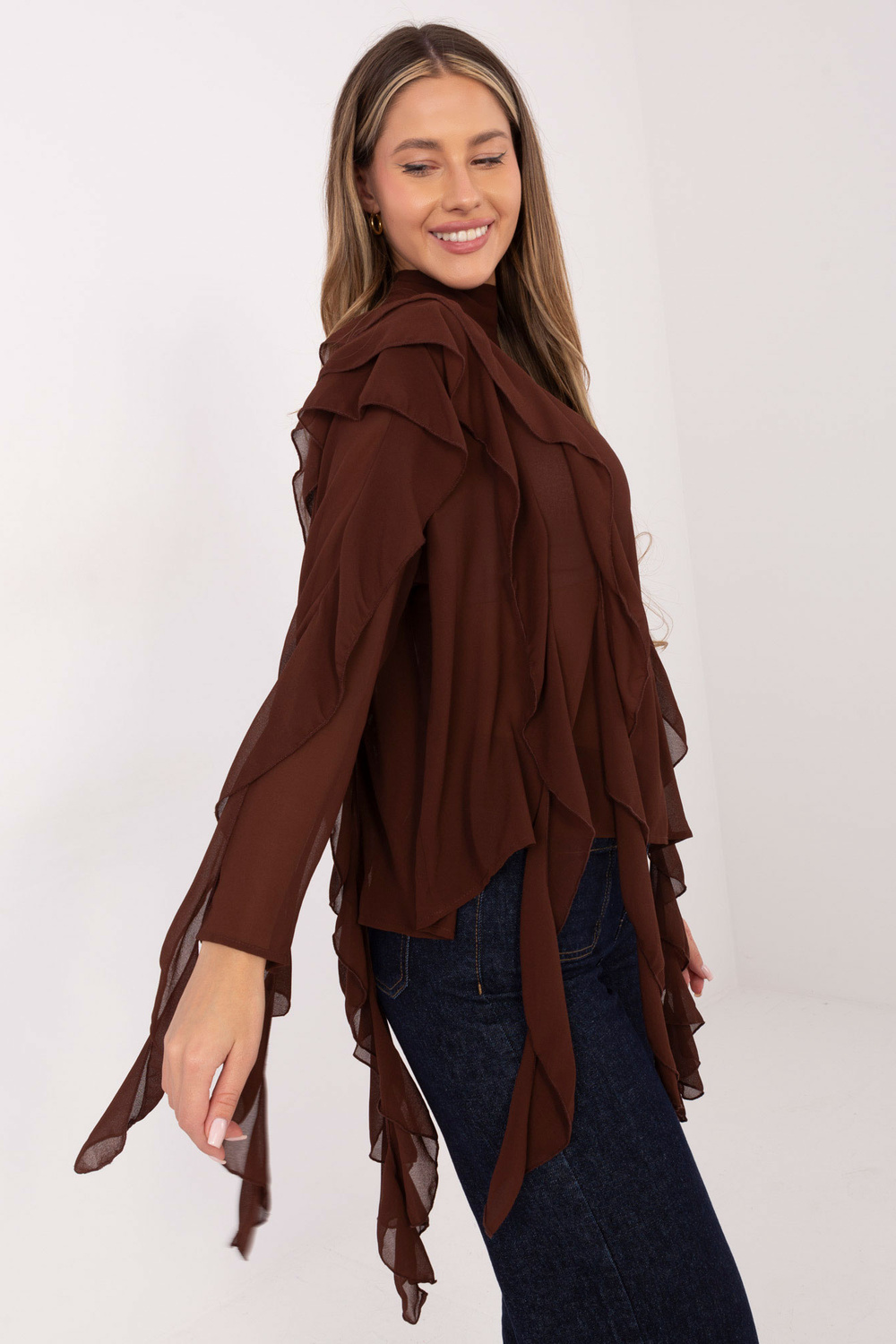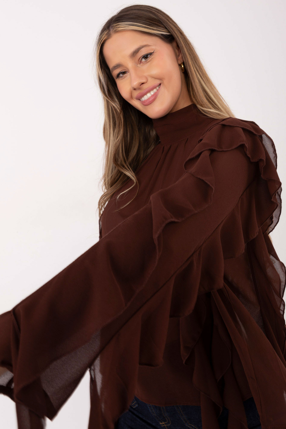 Rozměry halenky jedné velikosti měřené na plocho: šířka pod pažemi - 72 cm, celková délka - 59 cm, šířka dole - 72 cm, délka rukávu - 63 cm.