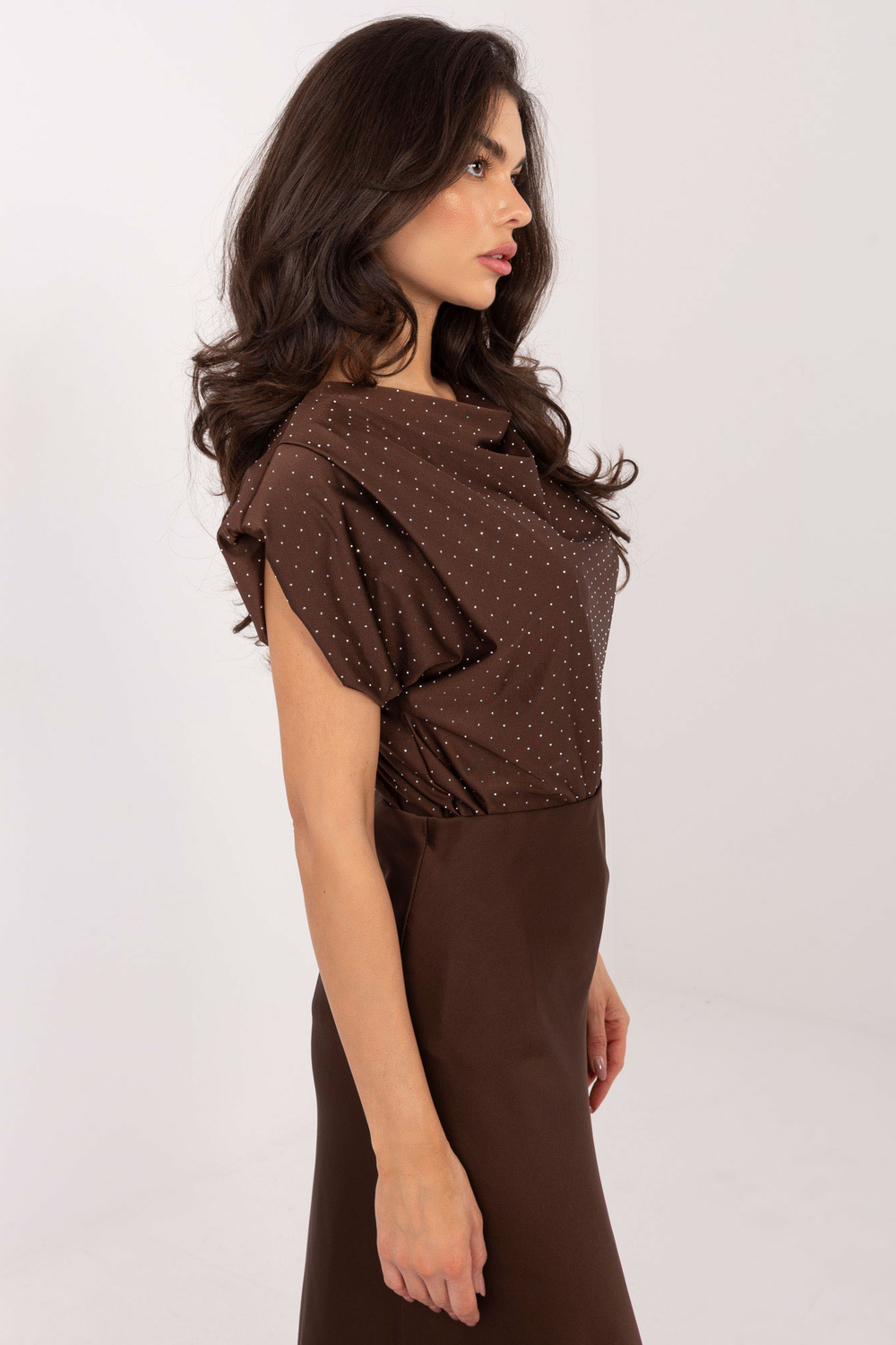 Modelka má na sobě oděv jedné velikosti. Rozměry modelky: výška 173 cm, prsa 85 cm, pas 62 cm, boky 95 cm.