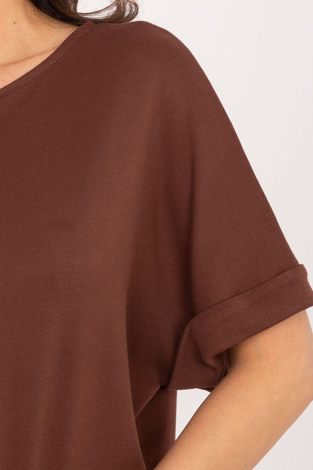 Rozměry halenky one size měřené na plocho: šířka pod pažemi – 70 cm, celková délka – 63 cm, šířka boků – 64 cm, délka rukávu – 23 cm (od švu).