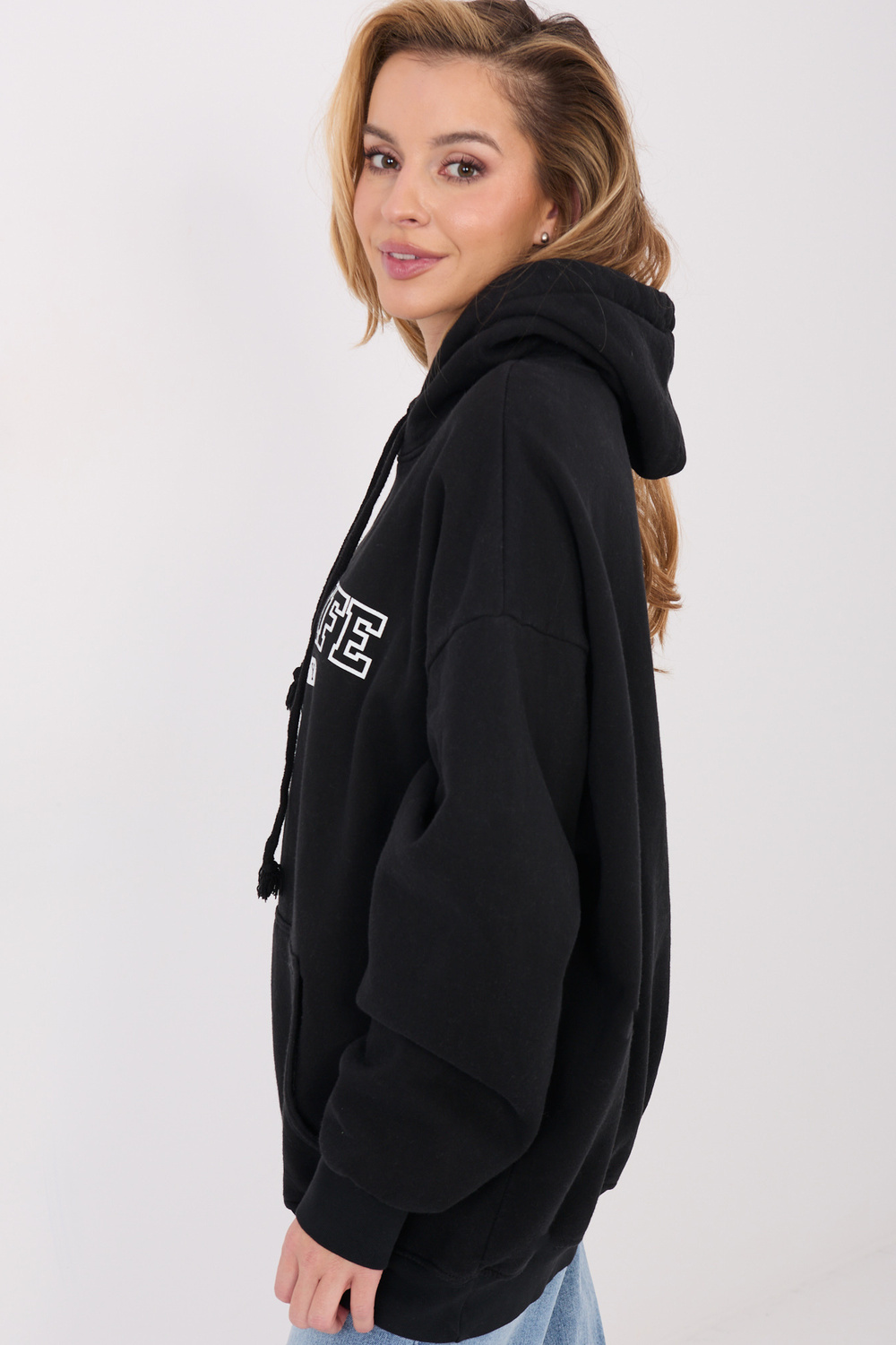 Modelka má na sobě oděv one size. Rozměry modelky: výška 169 cm, obvod hrudníku 88 cm, pas 68 cm, boky 89 cm.