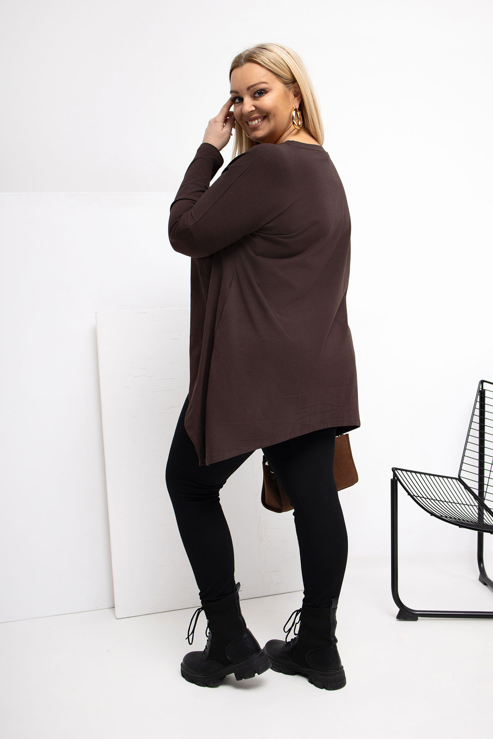 Rozměry halenky jedné velikosti XL/2XL měřené naplocho: šířka pod pažemi - 65 cm, šířka v oblasti boků - 75 cm, délka rukávu - 24 cm (od švu), celková délka - 69 cm (přední část), celková délka - 78 cm (zadní část).