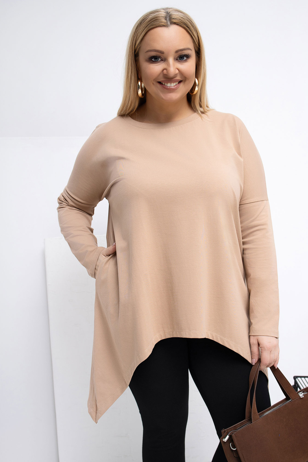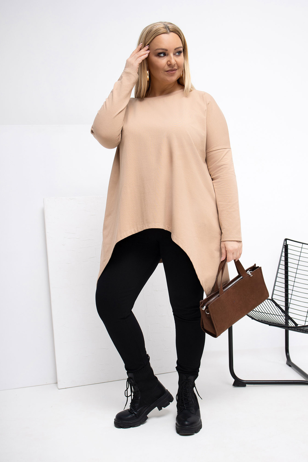 Model nosí oděv jedné velikosti XL/2XL. Rozměry modelu: výška 167 cm, hrudník 118 cm, pas 90 cm, boky 118 cm .