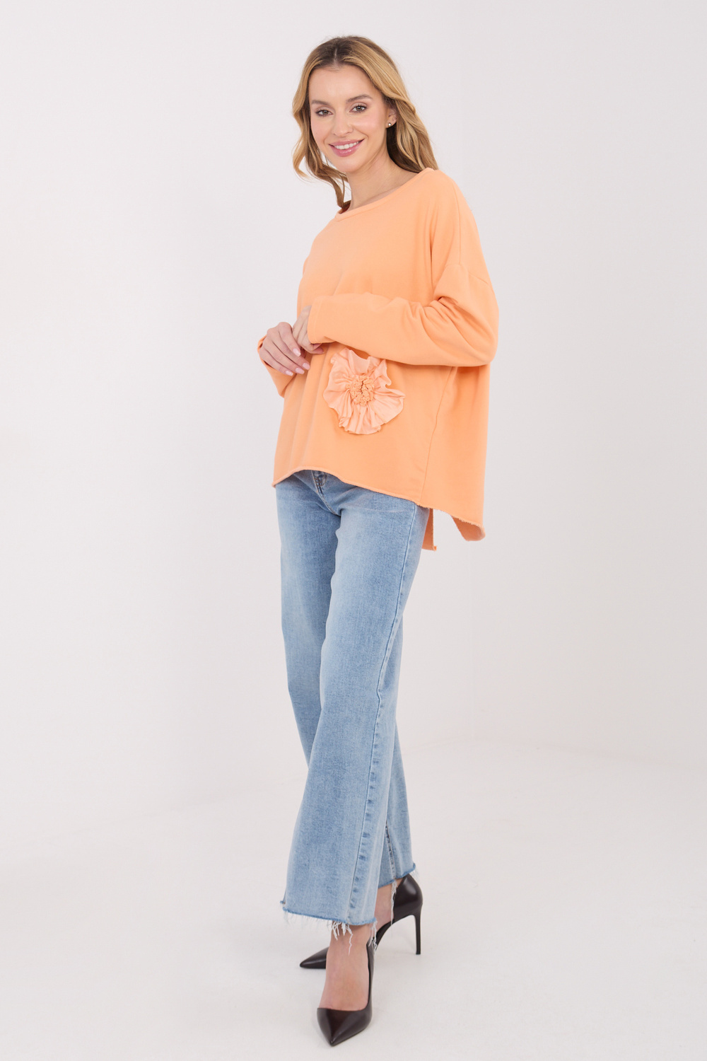 Model nosí oblečení jedné velikosti. Rozměry modelky: výška 169 cm, hrudník 88 cm, pas 68 cm, boky 89 cm.