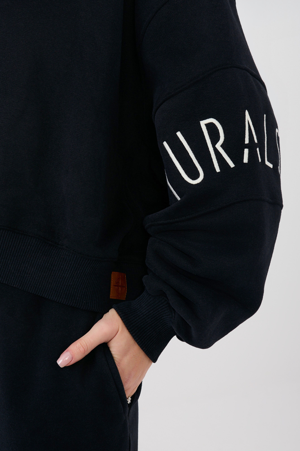 Modelka má na sobě velikost XS/S. Rozměry modelky: výška 169 cm, hrudník 88 cm, pas 68 cm, boky 89 cm.