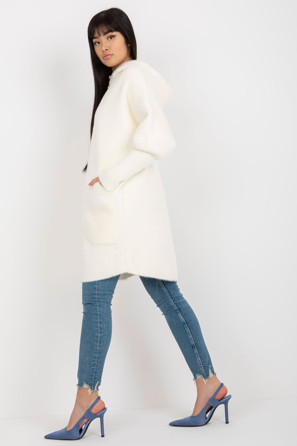 Dámský kabát z alpaky Ecru s kapsami a kapucí.