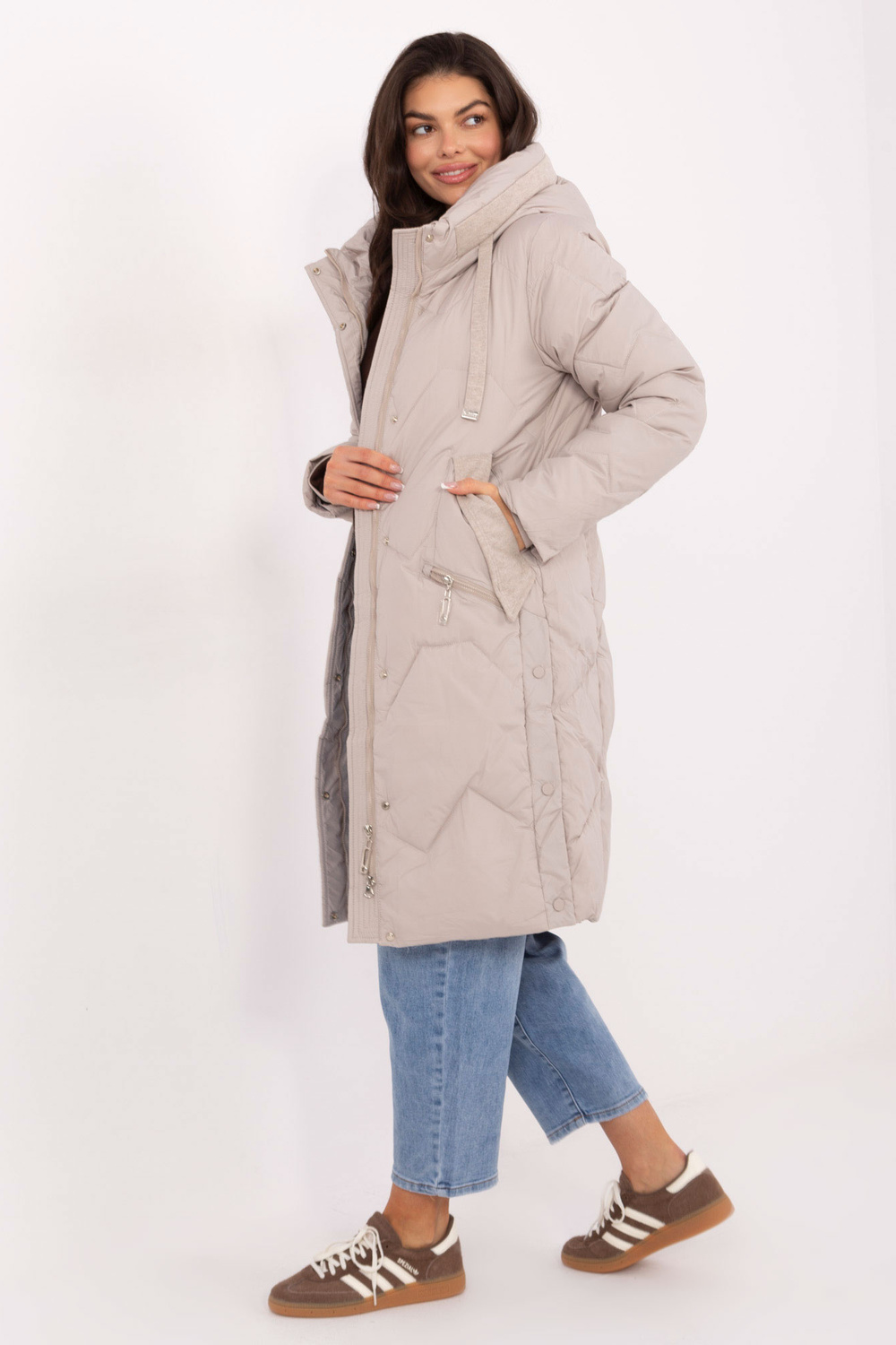 Rozměry bundy jedné velikosti měřené vleže: šířka pod pažemi - 53 cm, šířka v bocích - 54 cm, délka rukávu - 64 cm (od švu), celková délka - 97 cm.