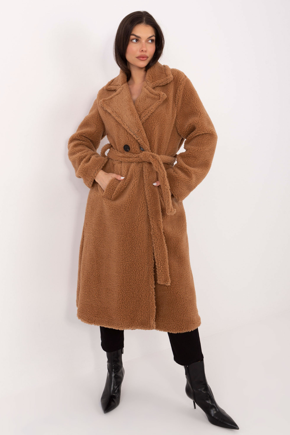 Rozměry kabátu v univerzální velikosti, měřeno na vyrovnaném výrobku: šířka pod pažemi – 55 cm, délka rukávu – 65 cm (od švu), šířka v pase – 50 cm, šířka v bocích – 60 cm, celková délka – 118 cm.