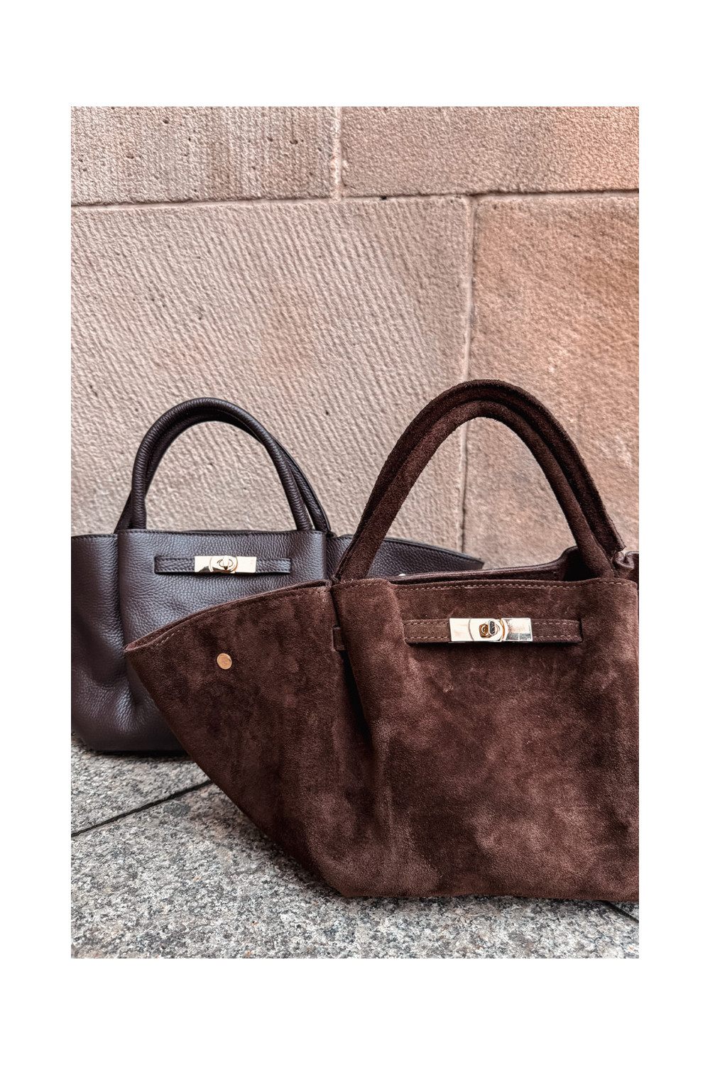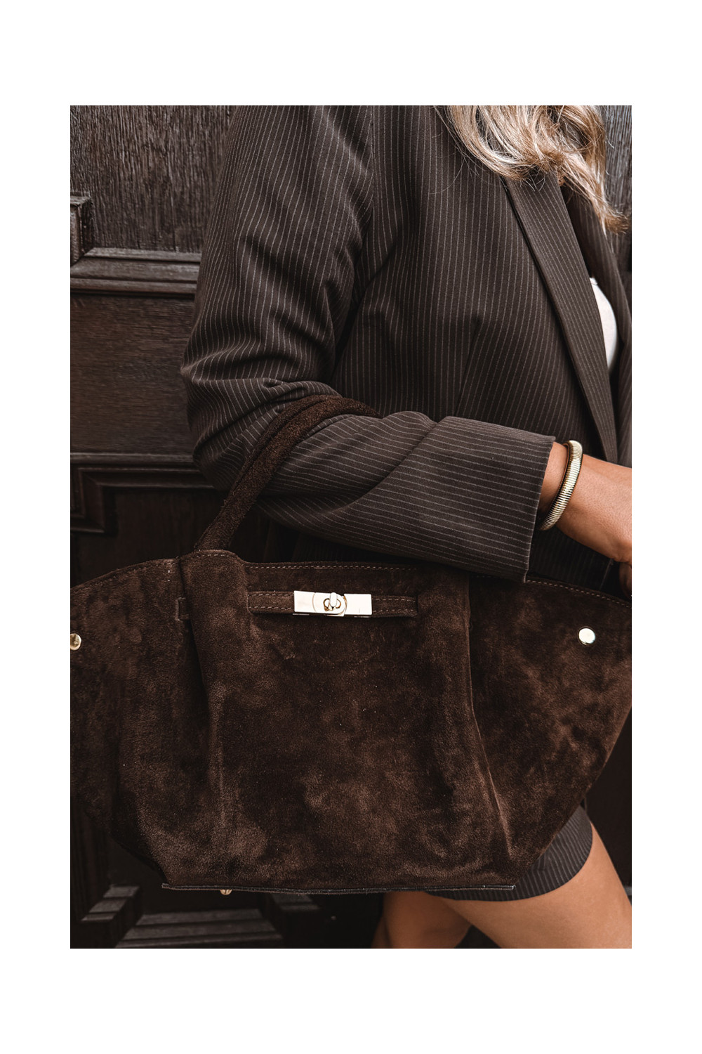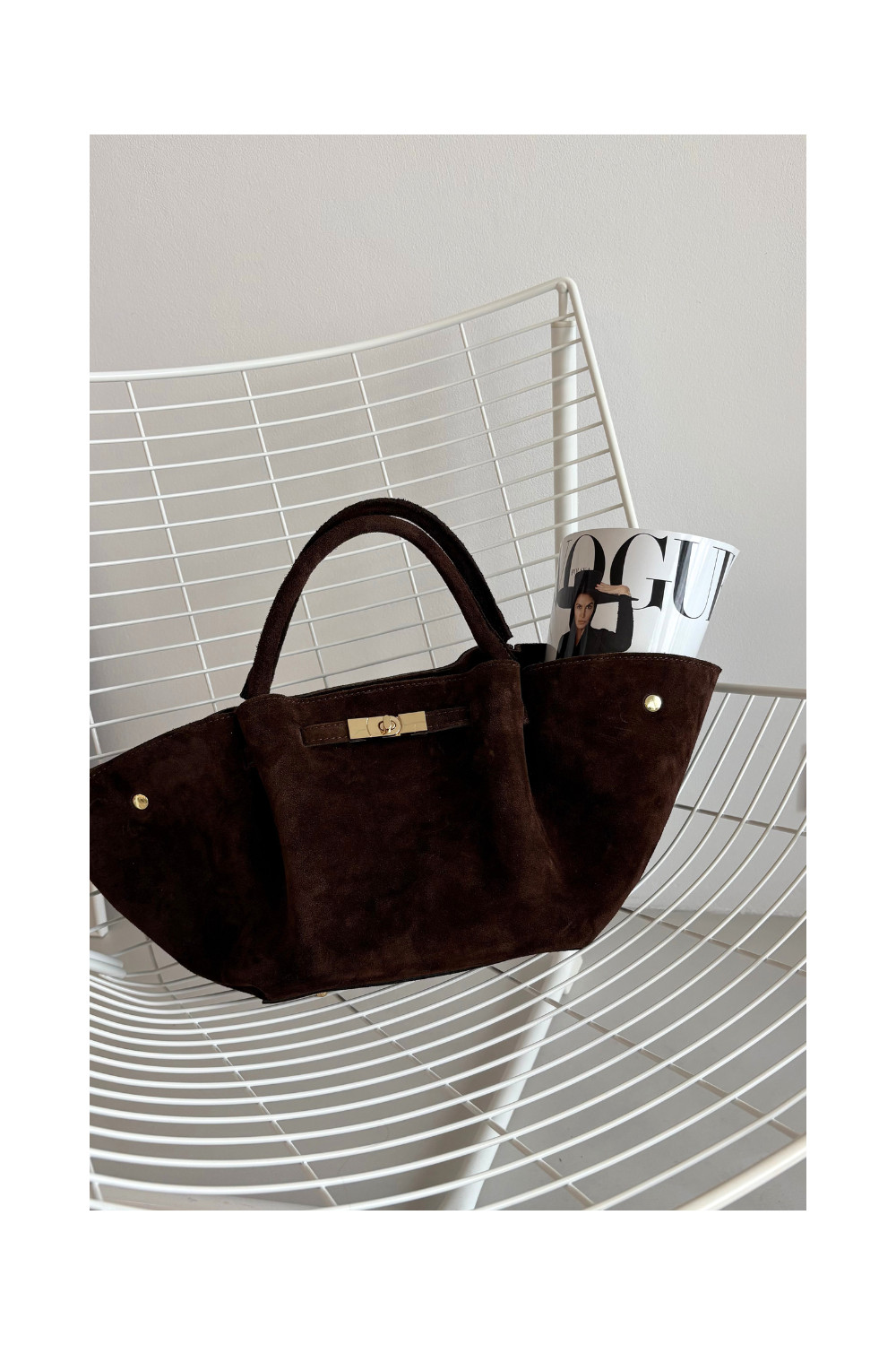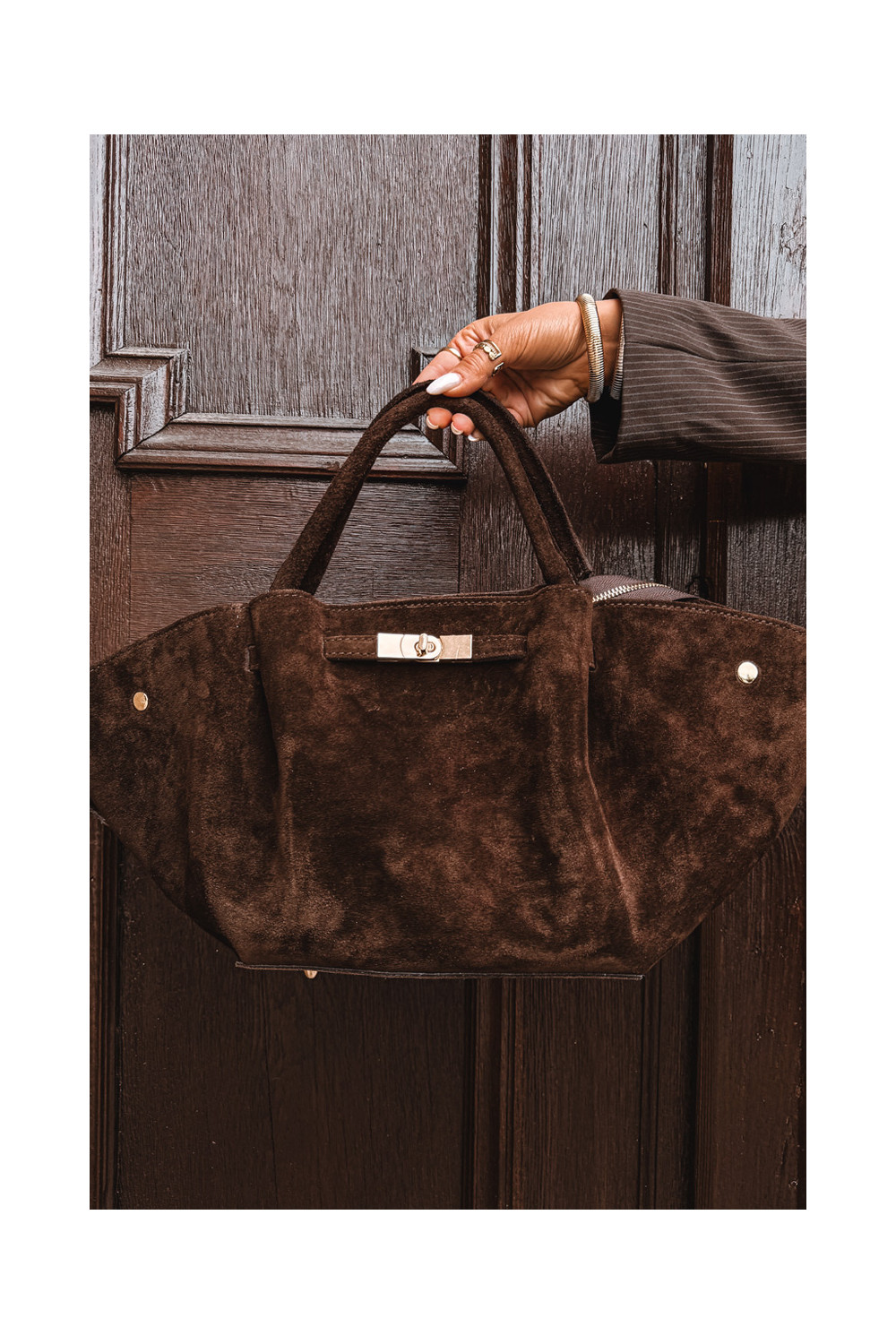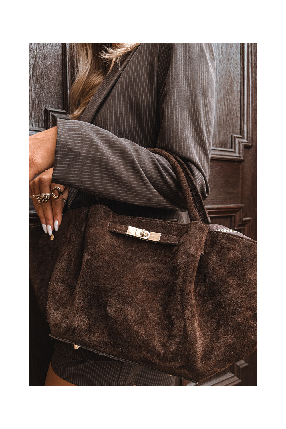 Kabelka Z Naturalnego Zamszu Czekoladowa Fiorenza