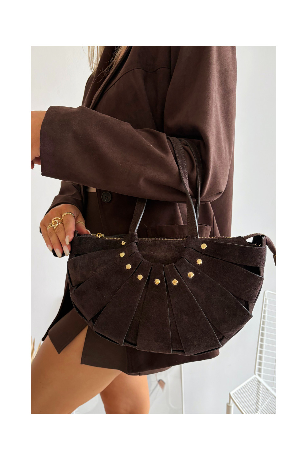 Kabelka Z Naturalnego Zamszu Czekoladowa Tialine