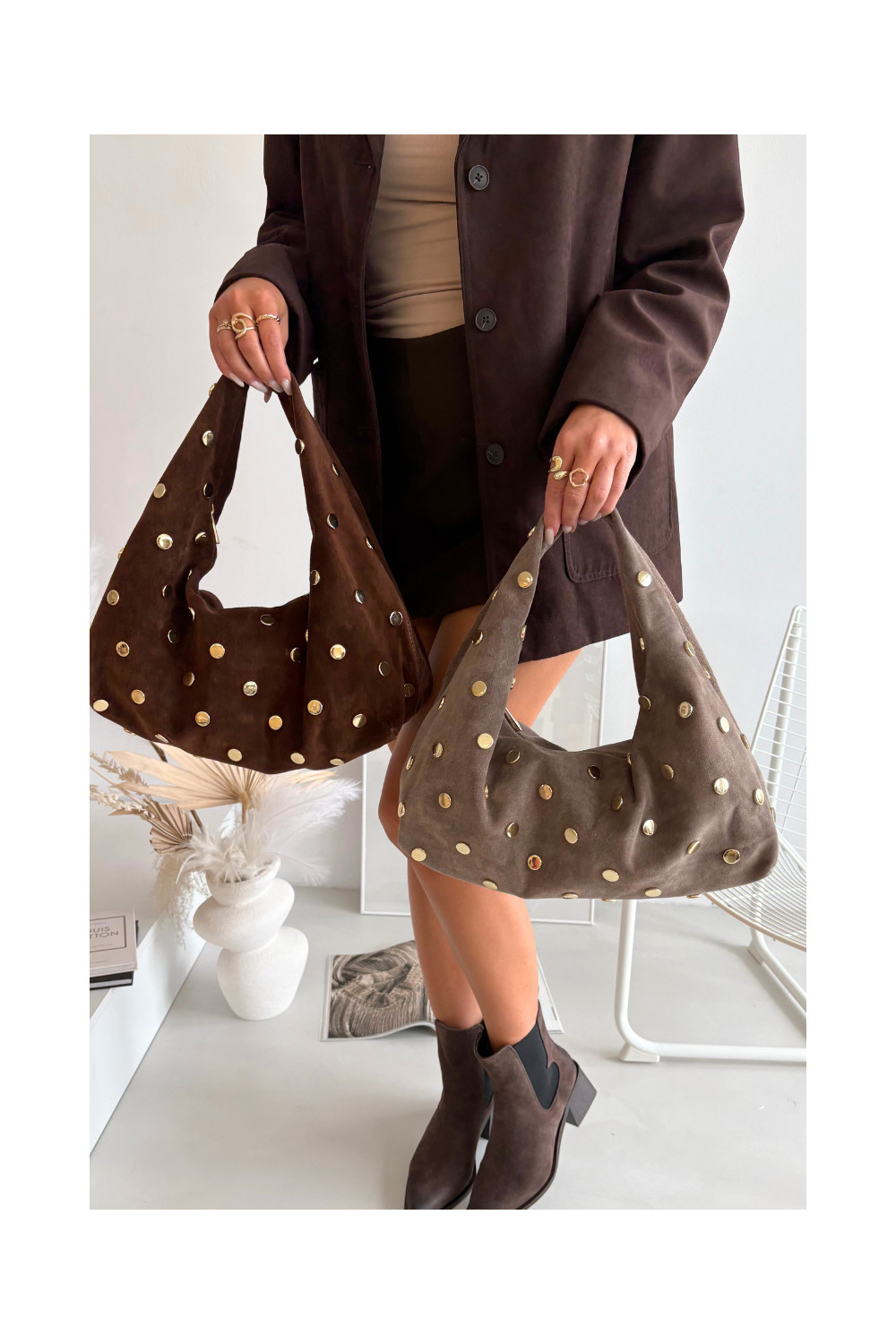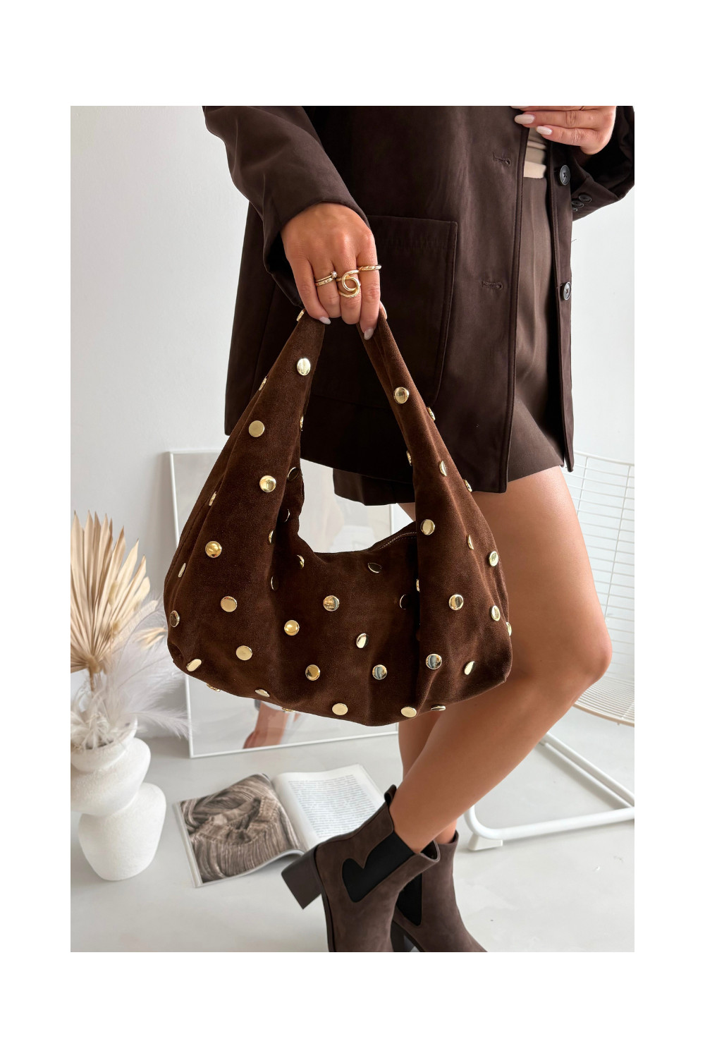 Skórzana Zamszowa Kabelka Czekoladowa Narisse