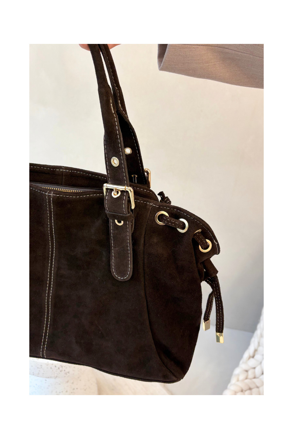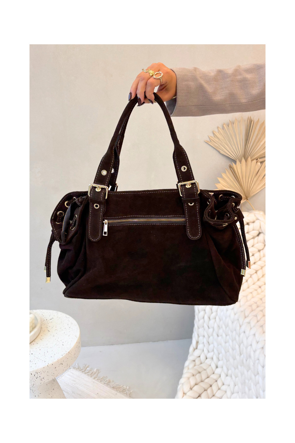 Kabelka Z Naturalnego Zamszu Czekoladowa Danira