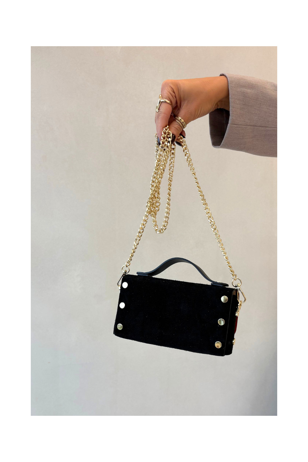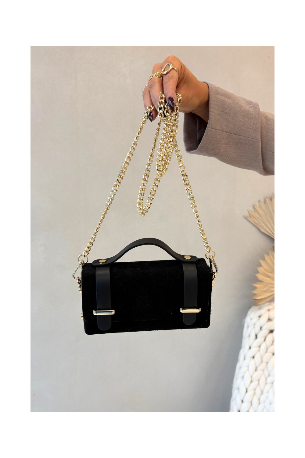 Kabelka Z Naturalnego Zamszu s řetízky černá Nivra