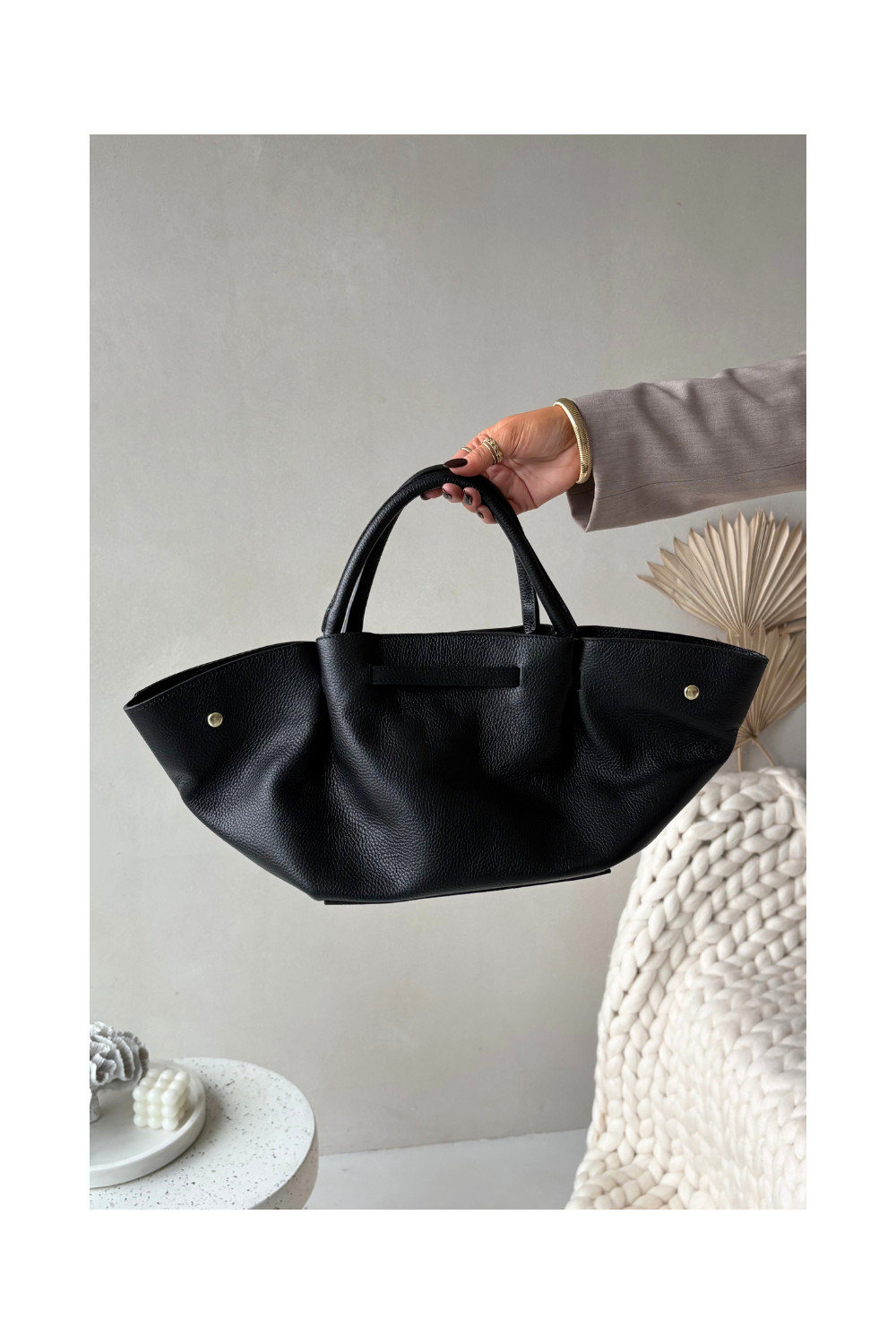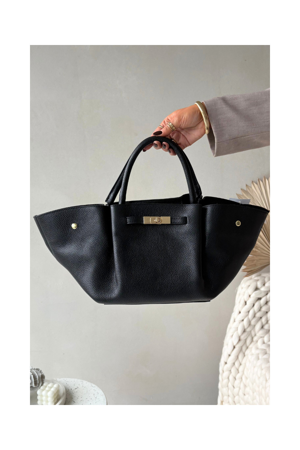 Kabelka Z Naturalnej Skóry černá Fiorenza