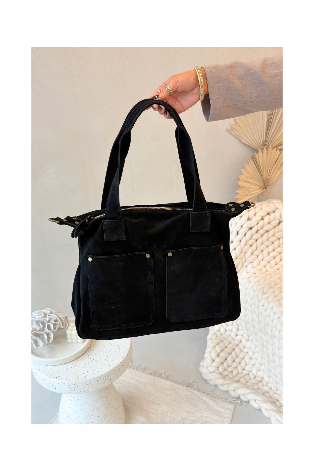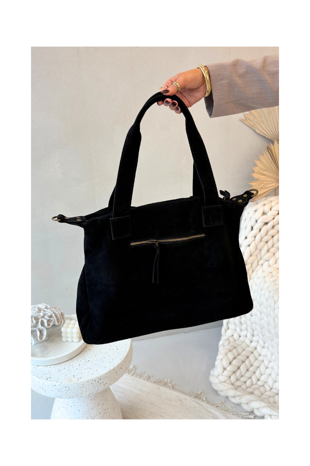 Skórzana Zamszowa Kabelka s kapsami černá Zephina