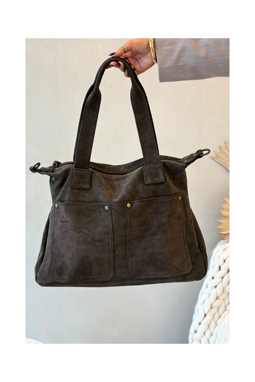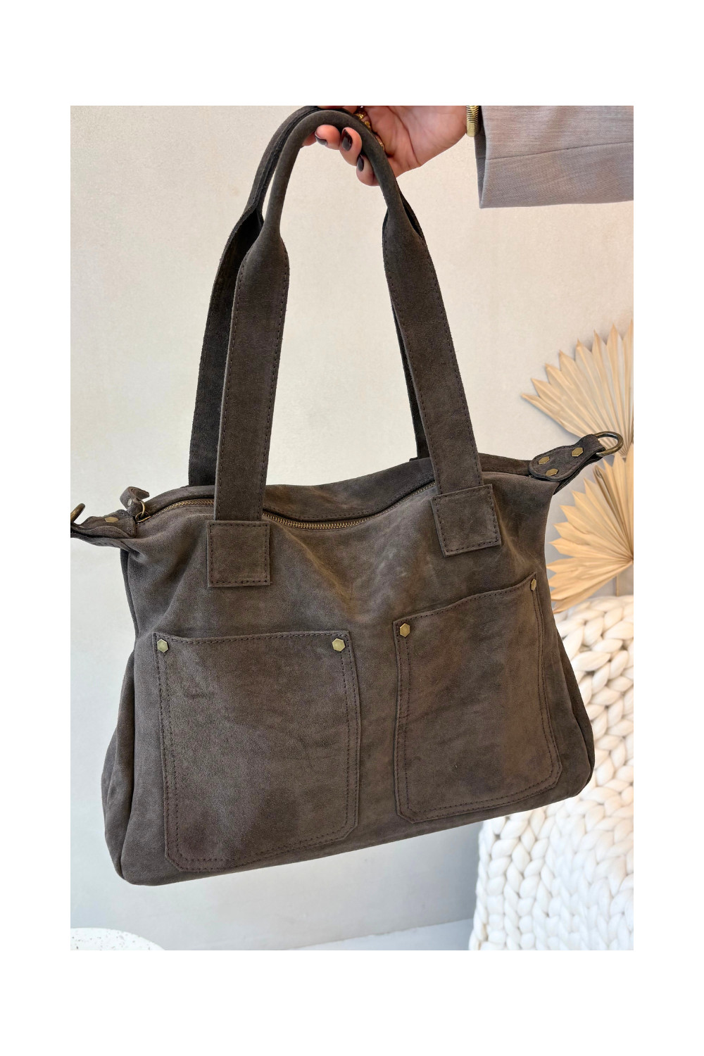 Skórzana Zamszowa Kabelka s kapsami hnědá Zephina
